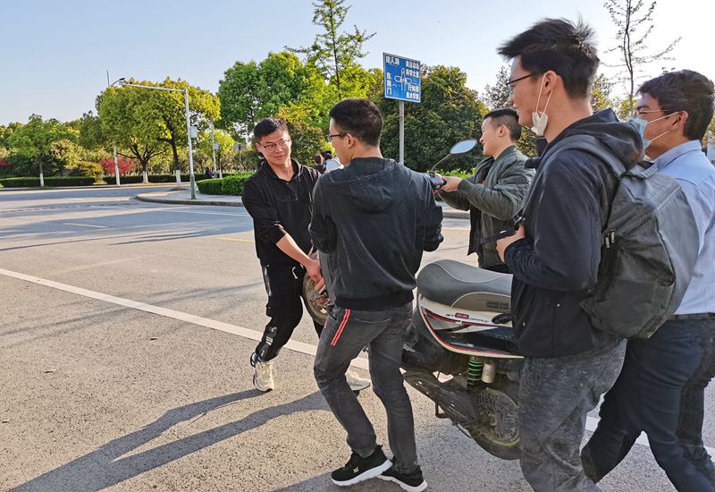 学生党员做好“我为师生办实事”,课余将楼前长期滞留、无人问津的大量废旧电频车和自行车进行集中整理,为同学们腾出更多停车空间,解决上课时间车辆拥堵现象。