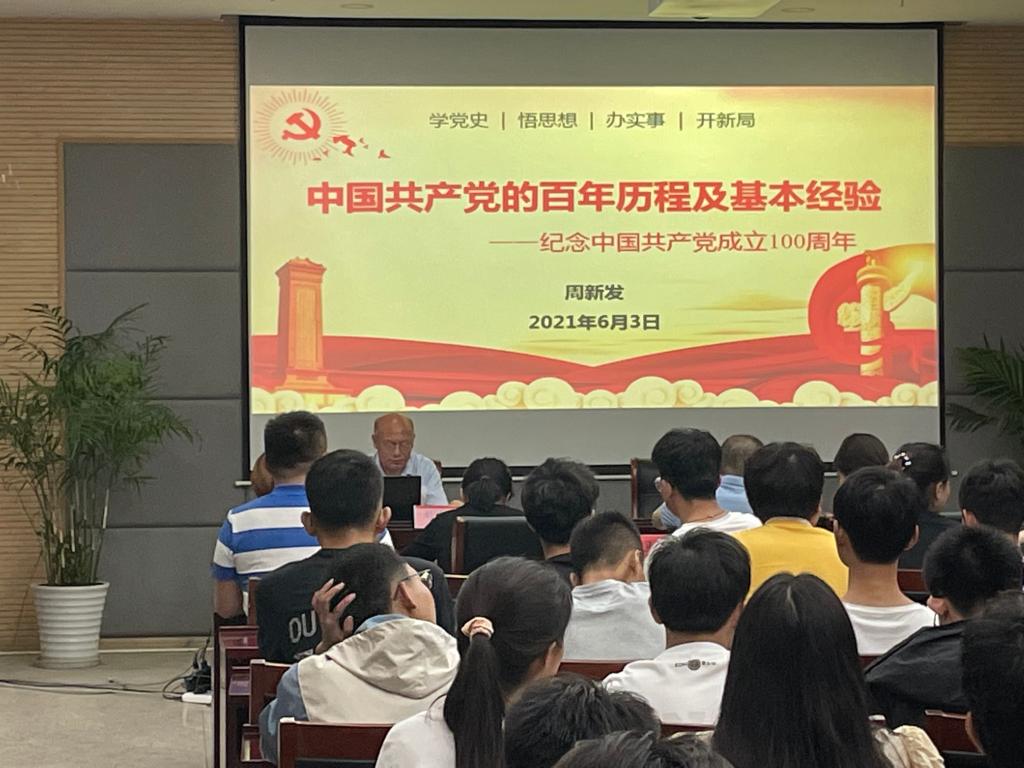 周新发以习近平总书记今年2月20日在全国党史学习教育动员部署会议上的重要讲话精神为引,从学习党史的重大意义、百年党史的基本脉络、百年党史的基本经验三个方面对“中国共产党的百年历程及基本经验”这一主题进行了详细的诠释。周新发围绕“中国共产党领导的中国革命为什么能够取得胜利”、“如何看待党对中国社会主义道路的探索”、“中国的改革开放为什么能够成功”三个问题,从新民主主义革命、社会主义革命、文化大革命、改革开放新的伟大革命等几个阶段细数共产党人的奋斗历程,论述共产党的艰辛;从救国、兴国、富国、强国四个角度,讲述共产党带领人民取得的巨大成就,阐述了共产党一切从实际出发、实事求是、以人民为中心的宝贵经验。周新发以生动风趣的语言风格和丰富详实的课堂内容,引经据典,旁征博引,带领在场师生了解了中国共产党百年奋斗历程,并从中获取了饱满的精神食粮。与会师生党员感悟颇丰,本次党史学习教育专题党课在热烈的掌声中圆满结束。