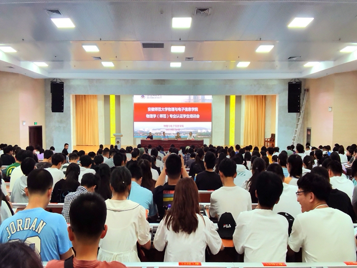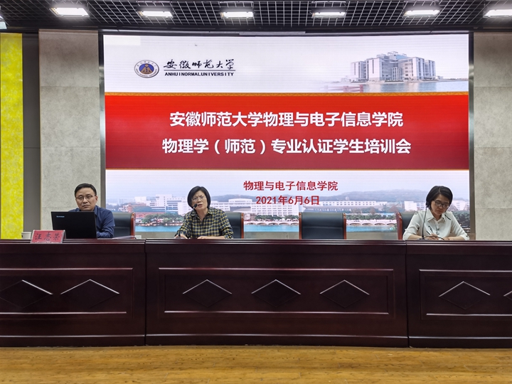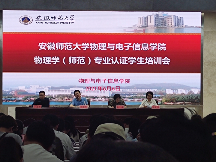 本网讯(必赢国际 邹孝龙)为强化物理学(师范)专业学生对师范认证的认识,提升师范生培养质量,加快物理学(师范)国家级一流本科专业建设,6月6日下午,必赢国际物理学(师范)专业认证学生培训会在花津校区理化大楼报告厅举行。学院党委书记李娟、院长郑贤锋、物理教师教育研究室主任汪志荣、物理学(师范)专业辅导员和全体学生出席会议。会议由学院教学副院长张爱清主持。
