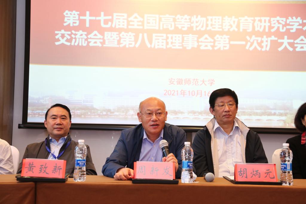 周新发在致辞中对领导、专家的莅临指导表示诚挚的欢迎,向大家长期以来对我校事业发展特别是物理学科建设发展的关心支持表示衷心的感谢,并简要介绍了我校办学情况。他指出,我校是安徽省建校最早的高等学府,是安徽高等教育的“母体”和基础教育的“母机”,先后为国家社会培养了一大批优秀人才。我校将以承办此次会议为契机,深入推进物理学专业建设发展,不断提高创新人才培养质量,努力为国家基础学科建设和地方经济社会发展作出新的更大贡献。