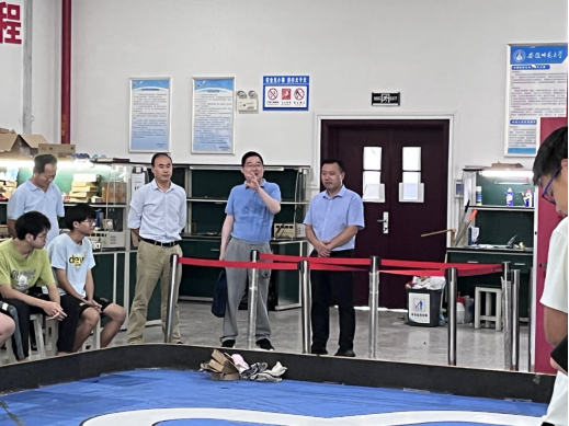 在金工实训中心,郑贤锋院长为参加学科竞赛的同学带来了慰问品与温暖的鼓励。他与同学们亲切交谈,叮嘱大家一定要注意休息,养足精神,在比赛期间尽全力去比赛,取得佳绩。在实验使用设备时要注意安全,注意自身安全和实验室实验仪器的使用安全,任何情况下都要把自己的生命安全放在第一位。最后,郑贤锋希望同学们在比赛过程中勇于克服困难,遇到困难勇敢向前,重在坚持不轻言放弃,并预祝同学们比赛取得佳绩。
