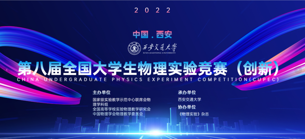 第八届全国大学生物理实验竞赛(创新)决赛于11月26-27日在西安交通大学以线上的方式举行。本次比赛由国家级实验教学示范中心联席会物理学科组、全国高等学校实验物理教学研究会、教育部大学物理课程教学指导委员会大学物理实验专项委员会、中国物理学会物理教学委员会联合主办,西安交通大学承办,《物理实验》杂志协办。包括中国科学技术大学、北京师范大学、华东师范大学、华中师范大学在内的400多所高校共2053支代表队参赛。