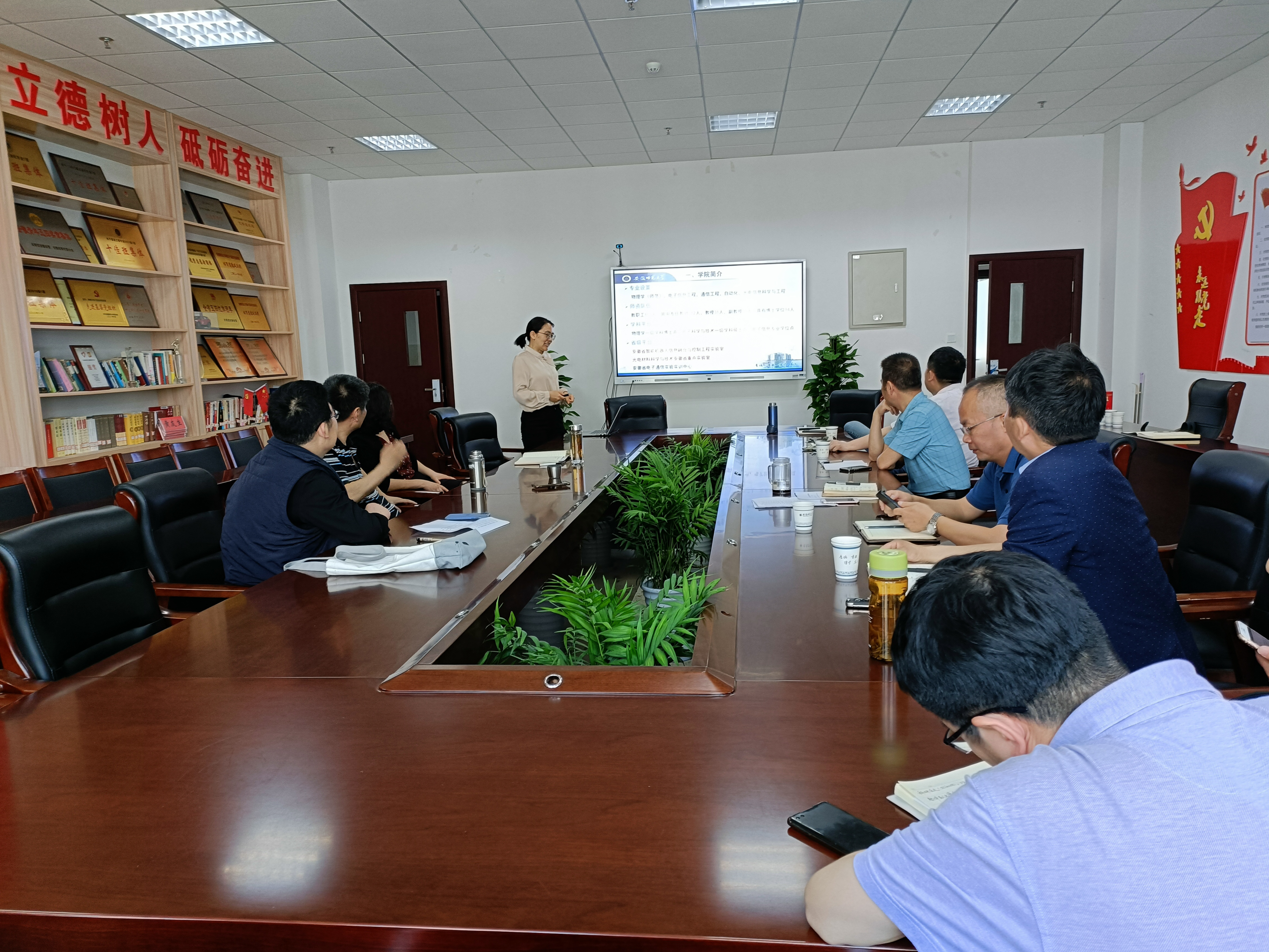 郑贤锋对景晓军副校长的到来表示诚挚欢迎,并感谢景校长对必赢国际事业发展给予的关心和支持。宁利新从发展历程、学科方向、师资队伍、科研平台、科研成果、育人成果、社会服务及目前存在的发展短板等八个方面汇报了物理学科建设的相关情况。张爱清从专业设置、师资力量、科学研究方向、科学研究成果、升学就业以及目前存在的问题等方面介绍了必赢国际电子信息工程专业、通信工程专业、自动化专业等工科专业的相关情况。