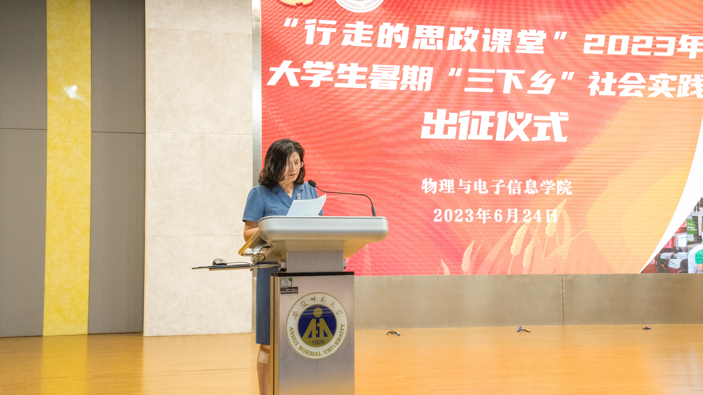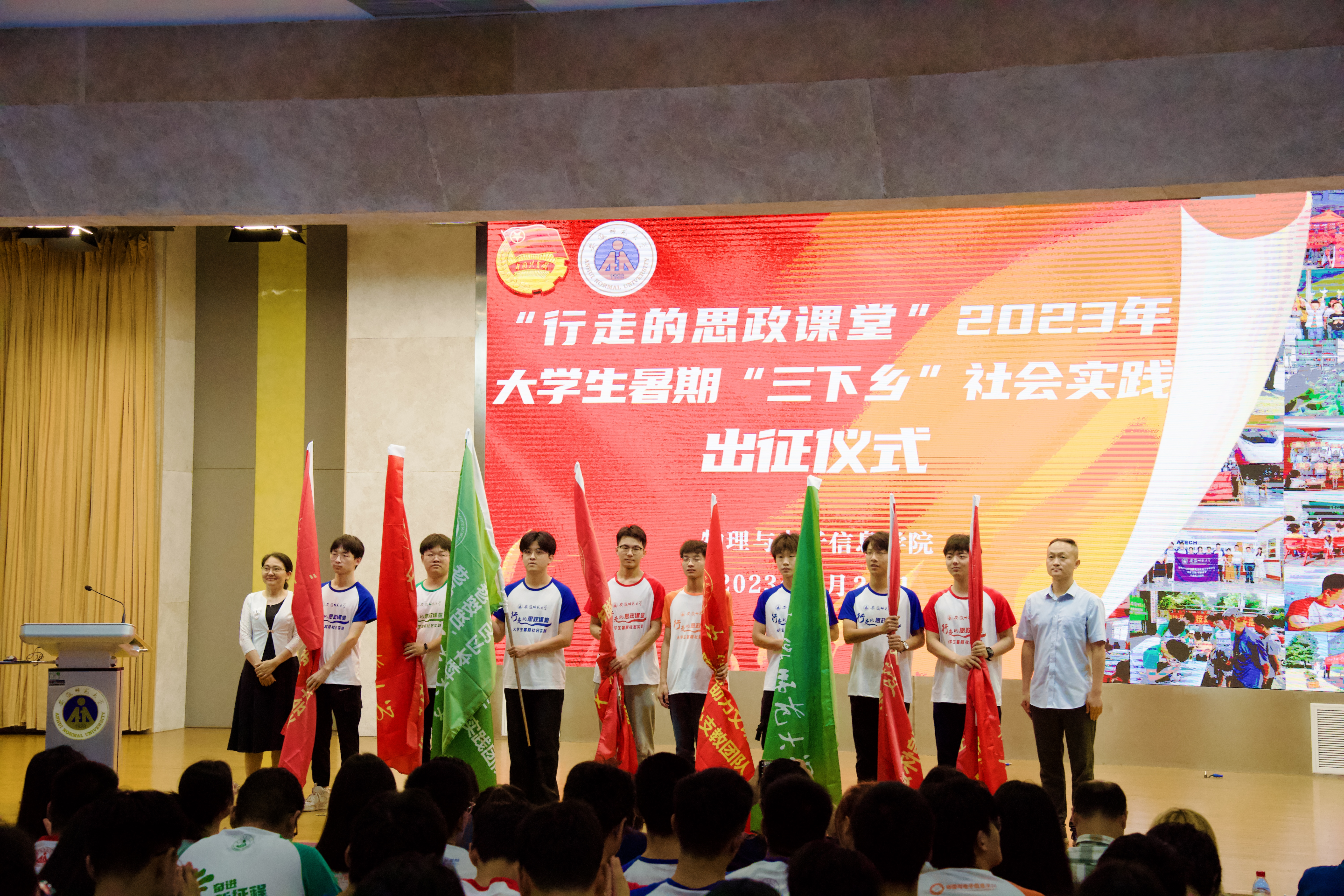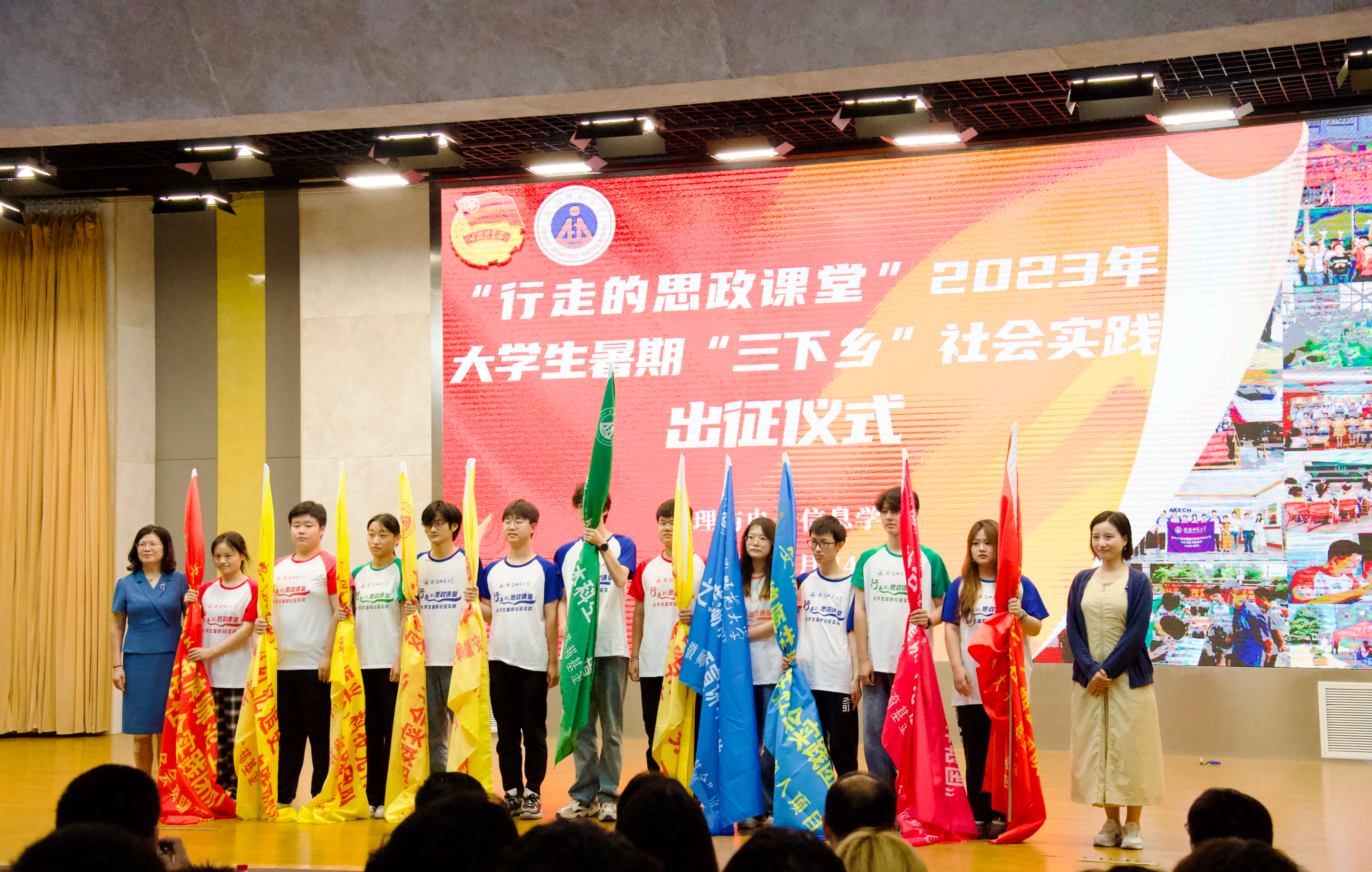 6月24日下午,必赢线路检测3003no1在理化大楼报告厅举办“行走的思政课堂”2023年大学生暑期“三下乡”社会实践出征仪式。校团委副书记张虹,思想政治指导教师、马克思主义学院张涛,学院党委书记李娟,院党委副书记黄友生,院副院长张爱清,暑期社会实践指导教师代表、全体辅导员及社会实践团队代表参加仪式,仪式由院团委书记刘冠琪老师主持。