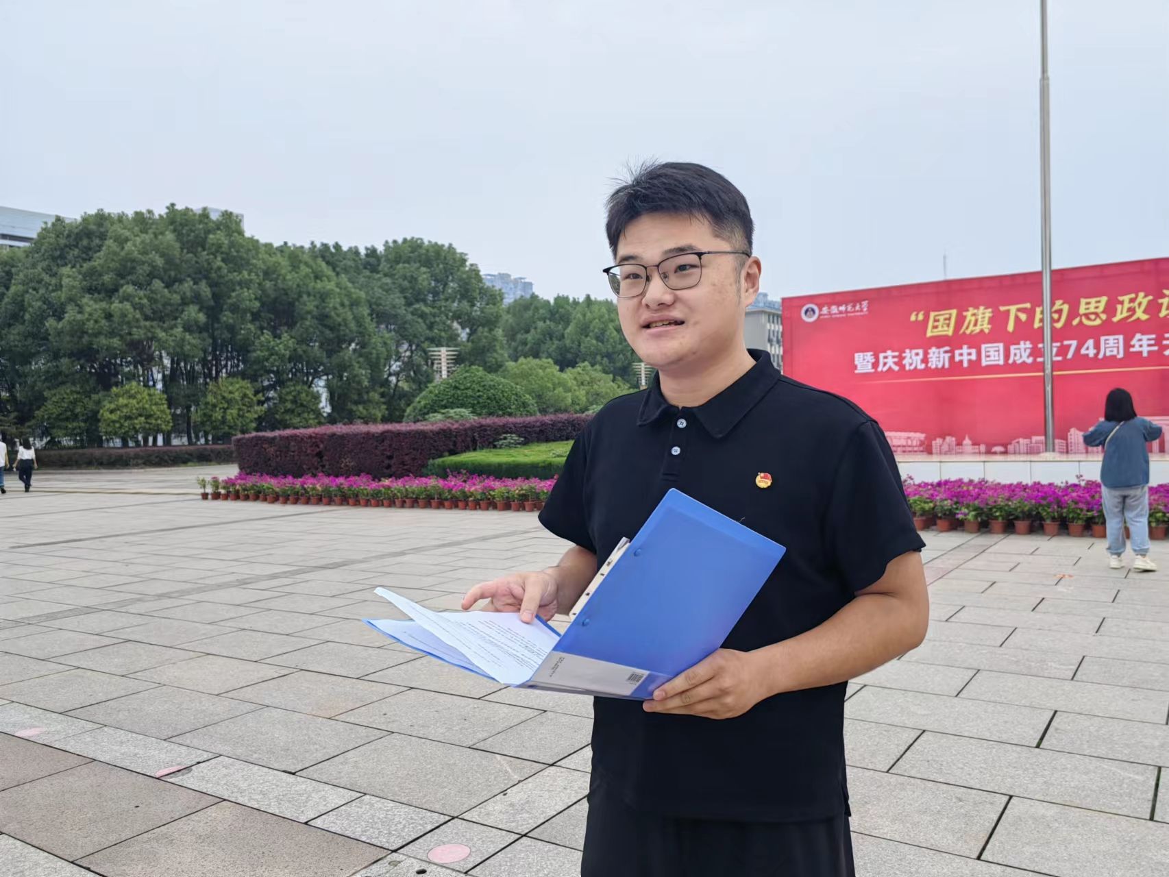 2023级物理学师范专业的吴冰冰和宋奥杰同学作为学生代表做了国旗下宣讲。他们用我国北斗卫星导航系统工程副总设计师谢军同志的感人事迹,激励同学们努力学好自身专业,不断培养创新意识,踏实躬身科研事业,将来把自己的所学所创都书写在祖国大地上,以实际行动为祖国的建设添砖加瓦。在两位同学声情并茂的演讲里,团员们感悟着科研前辈的心路历程和家国情怀,一颗颗红色的种子在每一个学子心里生根发芽。