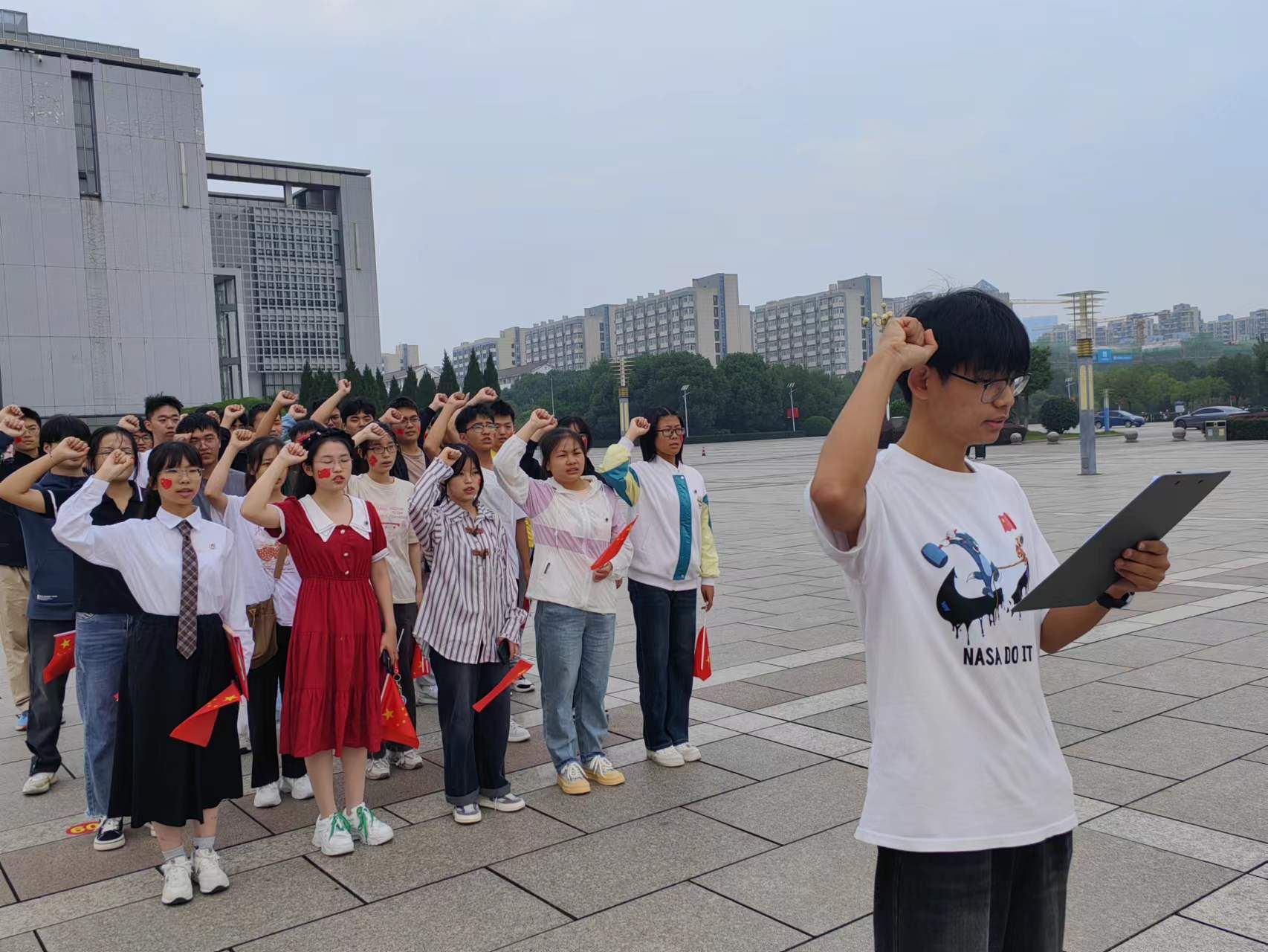 “我志愿加入中国共产主义青年团,坚决拥护中国共产党的领导,遵守党的章程,执行党的决议……”主题团日活动在庄严宣誓中拉开帷幕。在2023级光电信息科学与工程专业刘畅同学的带领下,团员代表以激昂铿锵的声音发出庄严的承诺。誓言映照初心,时刻警示着每一位共青团员坚定工作初心和为同学服务的不移信念。
