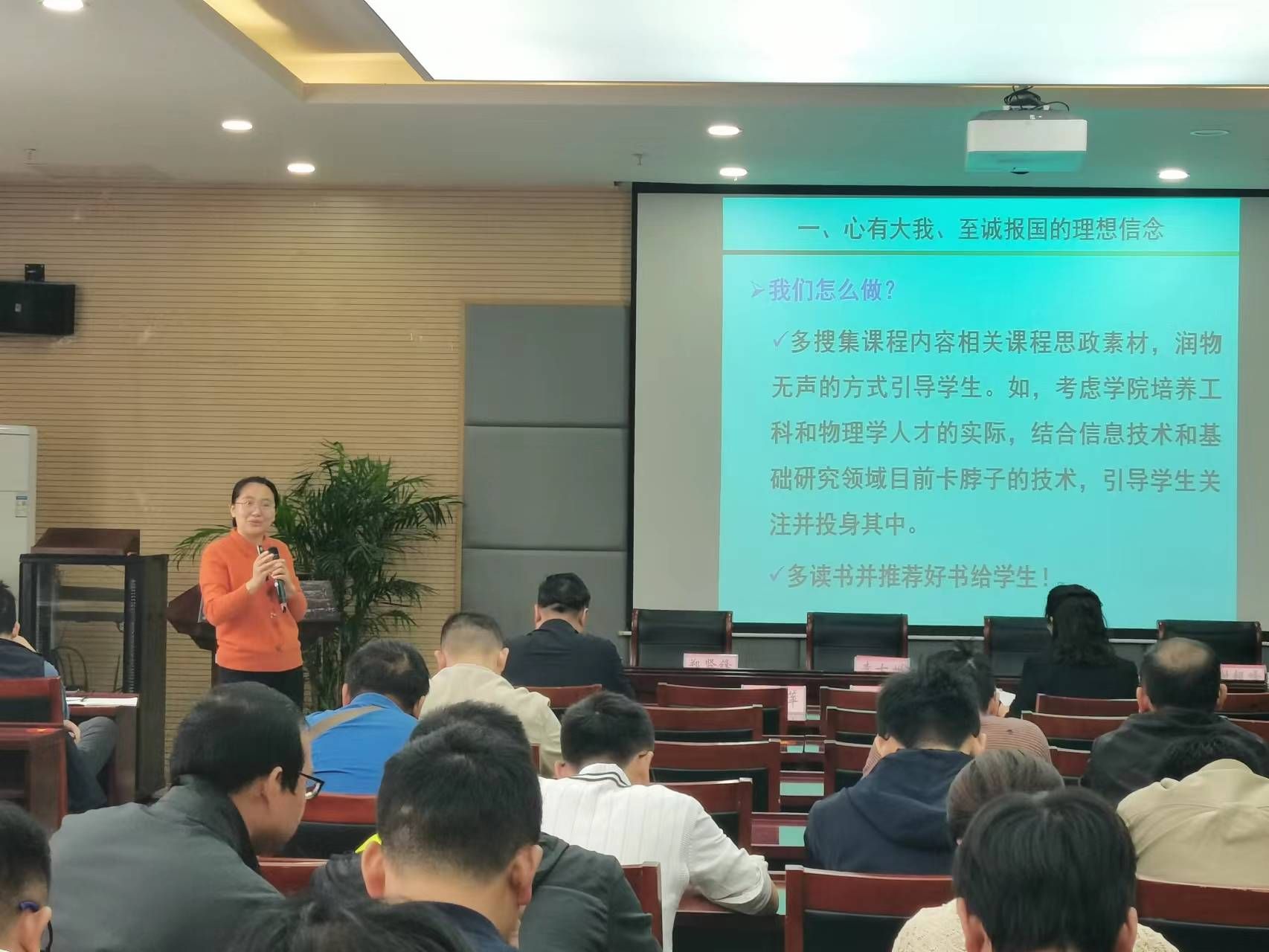副院长张爱清以“弘扬教育家精神,争做四有好老师”为主题作专题辅导报告,她结合实际,从理想信念、道德情操、育人智慧、躬耕态度、仁爱之心、弘道追求等方面,对教育家精神作了解读阐释。其间,她推荐了多本教育学相关的经典著作,并在报告最后强调教育者应当“多读书、读好书、好读书”,始终保持自身知识的鲜活与视野的广阔,才能更好地教书育人。