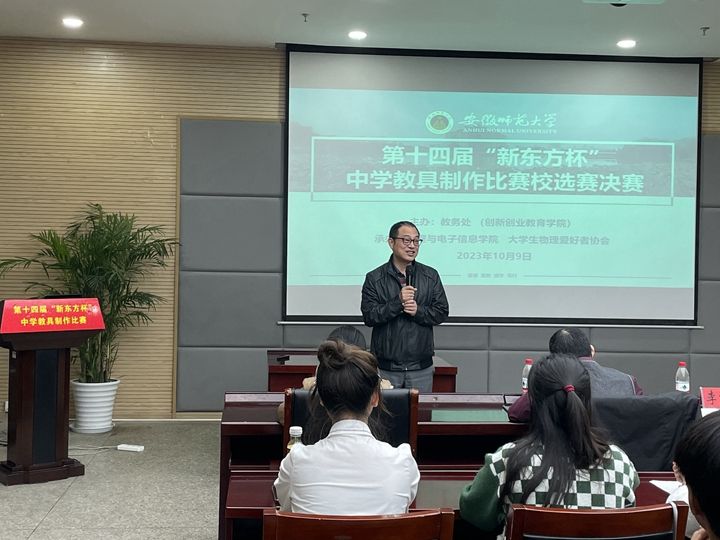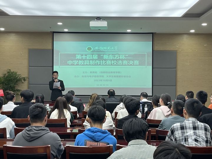 为深入落实学校“基础教育振兴行动计划”,教育引导师范生围绕中学各学科教学内容和学生实践活动制作教具,培养学生的创新精神和实践能力。10月9日晚,由教务处主办,必赢线路检测3003no1、大学生物理爱好者协会(以下简称“物协”)承办的第十四届“新东方杯”中学教具制作比赛校选赛决赛在必赢国际304报告厅举办。校教务处副处长、创新创业教育学院副院长李汪根,生命科学学院教学副院长陈冬生,外国语学院教师张荷,地理与旅游学院教师李俊峰,物理教师教育教研室主任汪志荣担任大赛评委。比赛由孟毅同学主持。