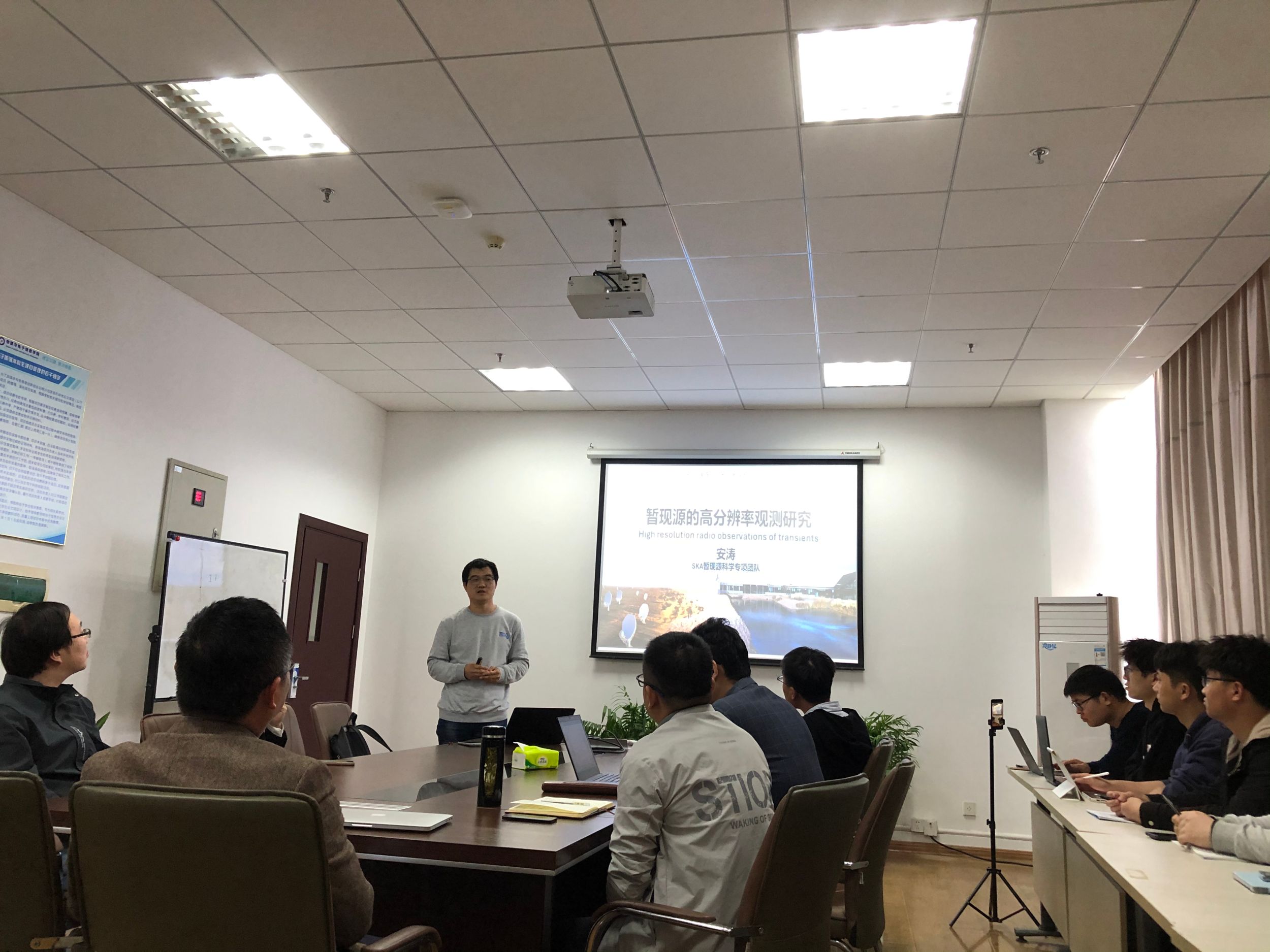 报告会上,安涛研究员讲述了近年来由于宽视场光学和射电巡天的进步以及新观测技术的应用,时域天文学得到快速发展,包括首次发现了引力波电磁辐射和来自银河系外的中微子。但是许多新的暂现源类别的特性和性质仍不清楚,这些暂现源一般与奇特的超新星、致密天体的合并或超大质量黑洞潮汐撕裂恒星事件有关。另一类是快速射电暴,这是在射电波段近年观测到的短期瞬变爆发源,持续时间仅为几毫秒。会上,安涛研究员结合自己的研究工作同与会师生分享了利用甚长基线干涉测量(VLBI)对暂现源现象进行高分辨率观测的最新进展和成果,该研究有助于甄别宇宙暂现源的起源和类别,拓宽对基础物理学的理解。报告会结束后,与会师生和安涛研究员就相关问题展开了热烈的讨论和交流。
