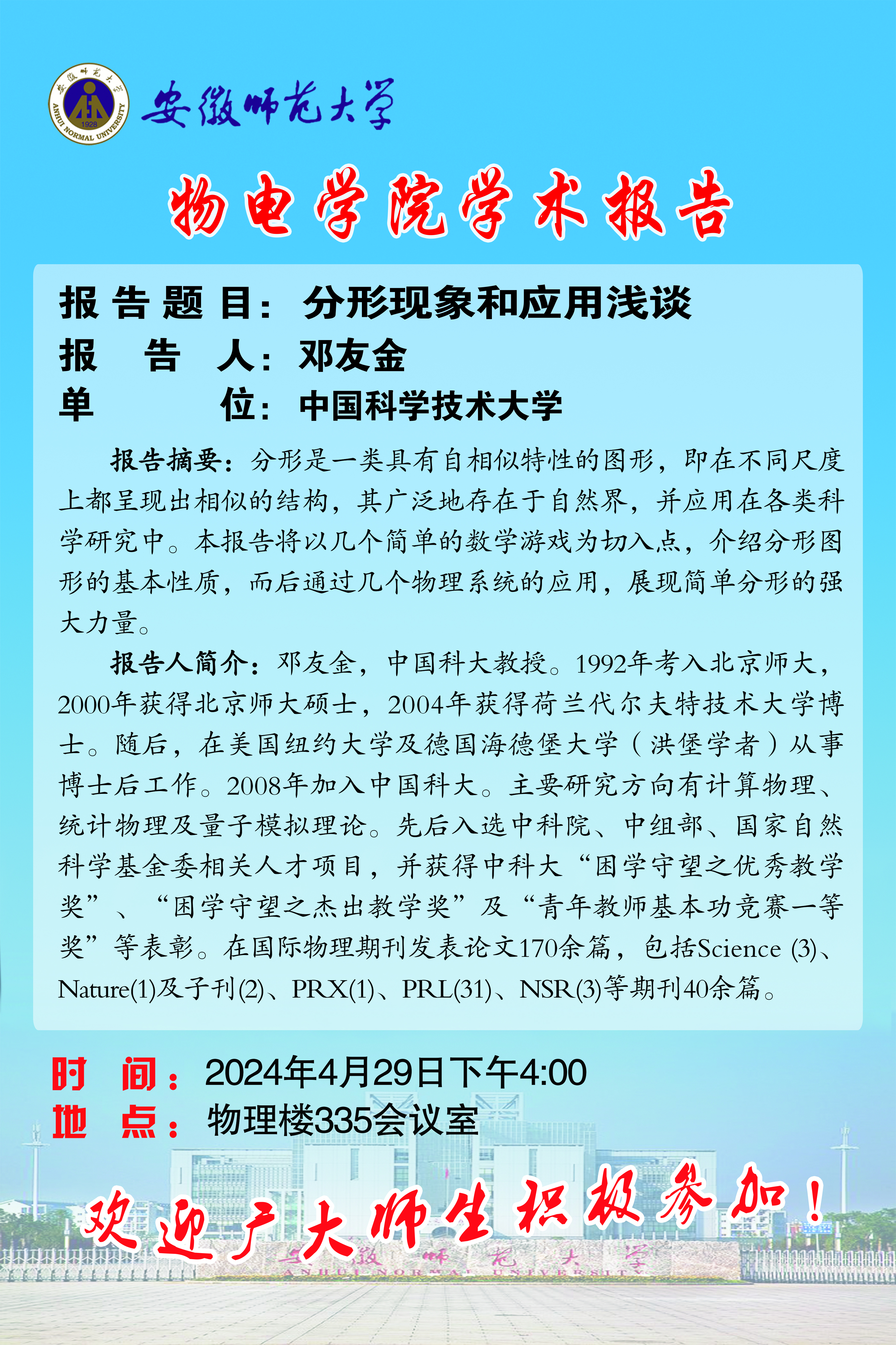 【学术预告】物电讲坛第19期:分形现象和应用浅谈
