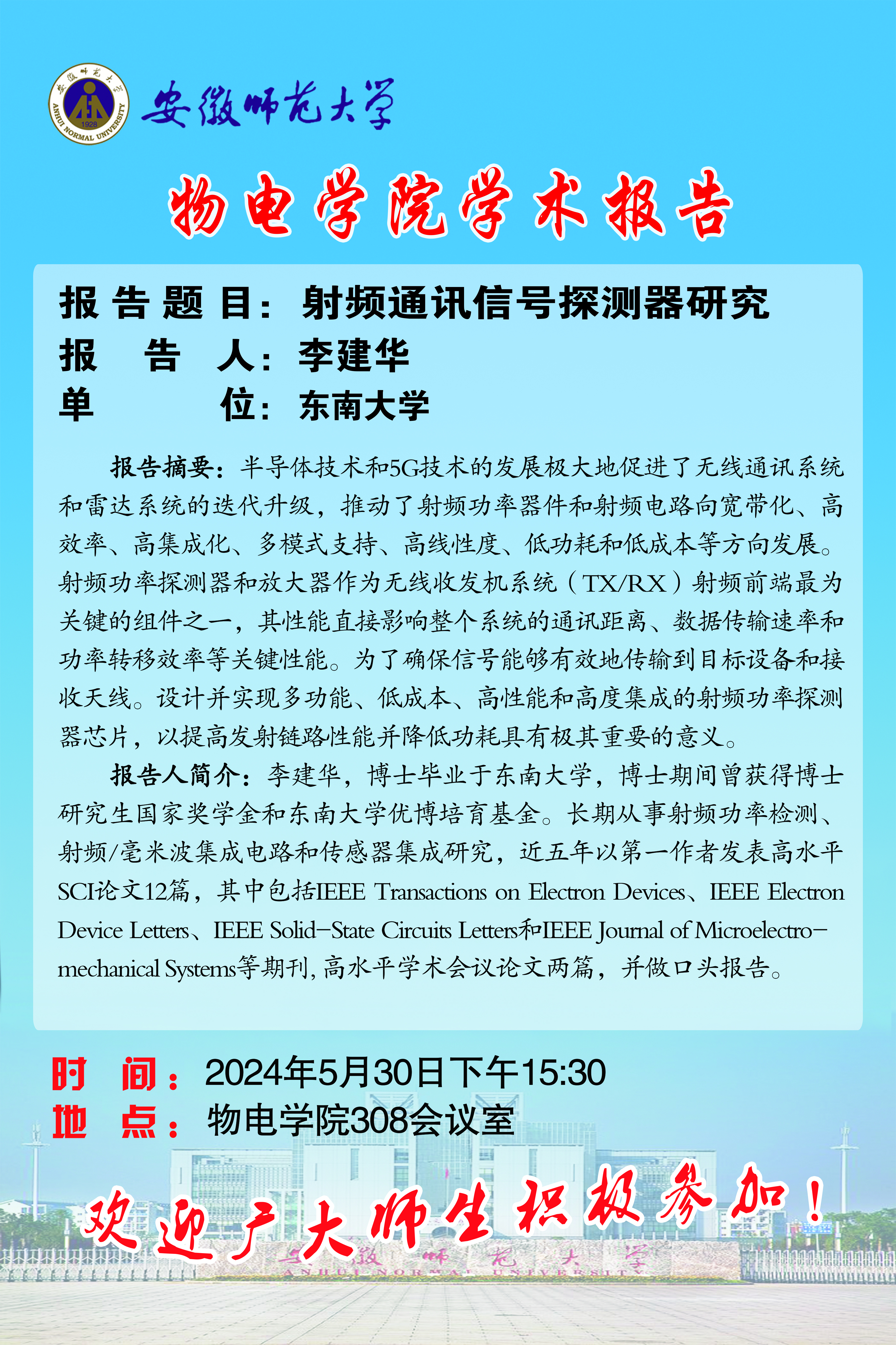 地址:花津校区-安徽省芜湖市九华南路189号 邮编:241000 电话:0553--3869894