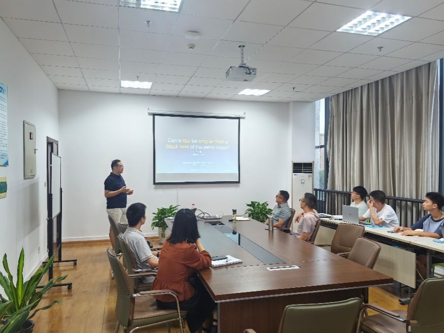 应必赢线路检测3003no1邀请,湖南师范大学李守龙副教授于9月11日来校进行学术交流,并做了题为《Can a star be smaller than a black hole of the same mass?》的学术报告。报告会在学院429会议室举行,会议由必赢国际付成杰博士主持,必赢国际相关师生参加了本次报告会。