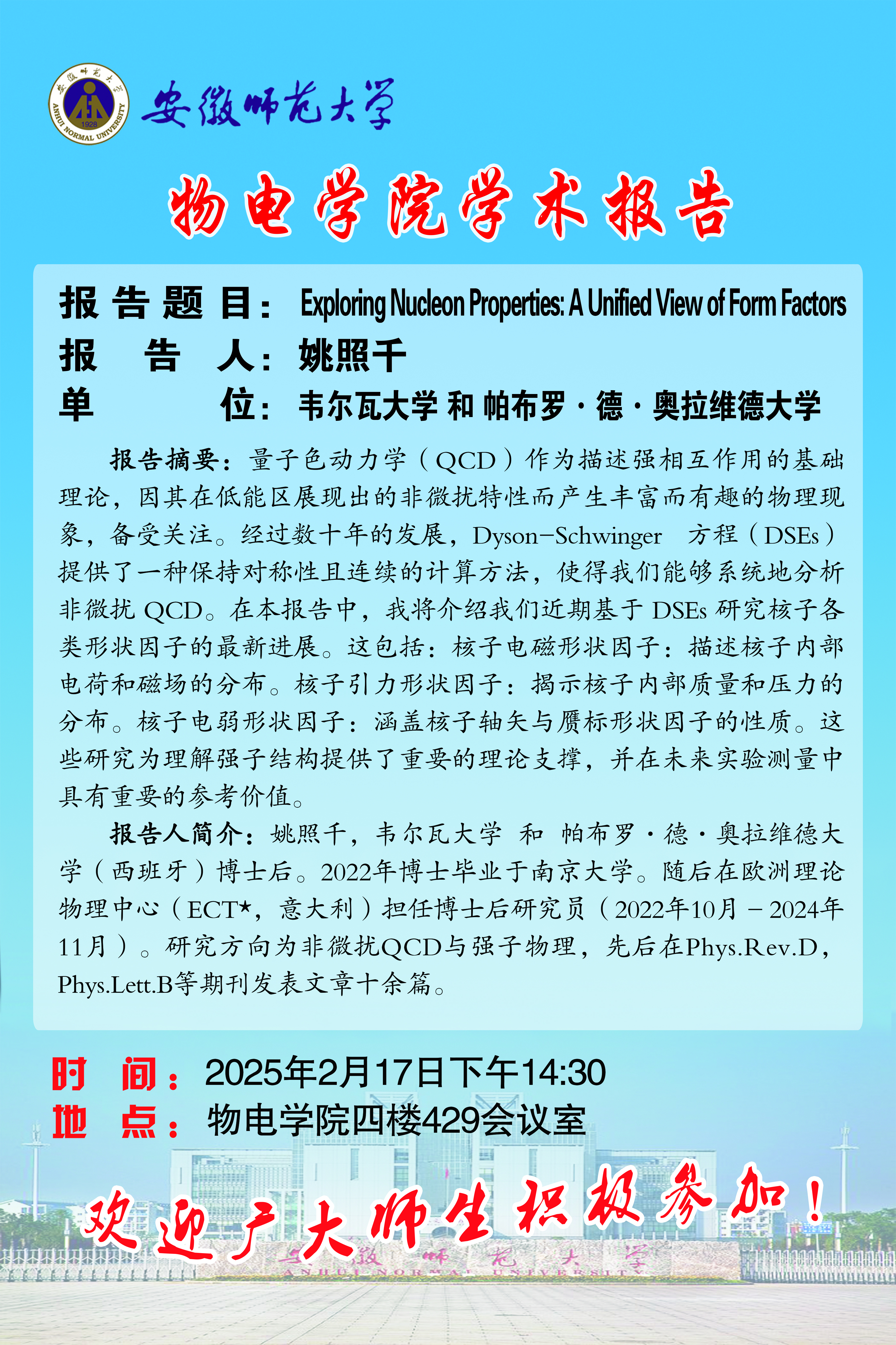 地址:花津校区-安徽省芜湖市九华南路189号 邮编:241000 电话:0553--3869894
