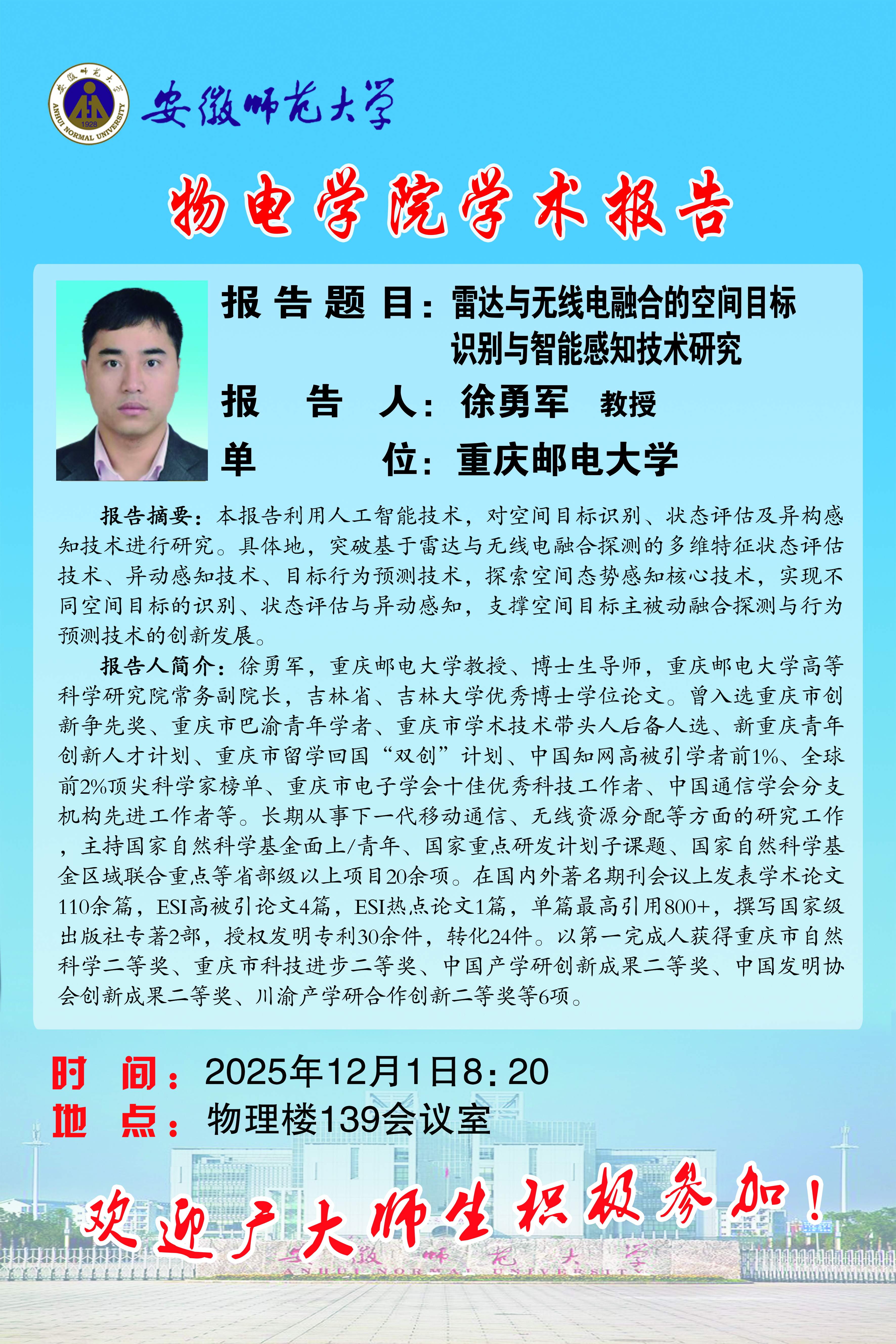 【学术预告】物电讲坛2025年第51期:雷达与无线电融合的空间目标识别与智能感知技术研究