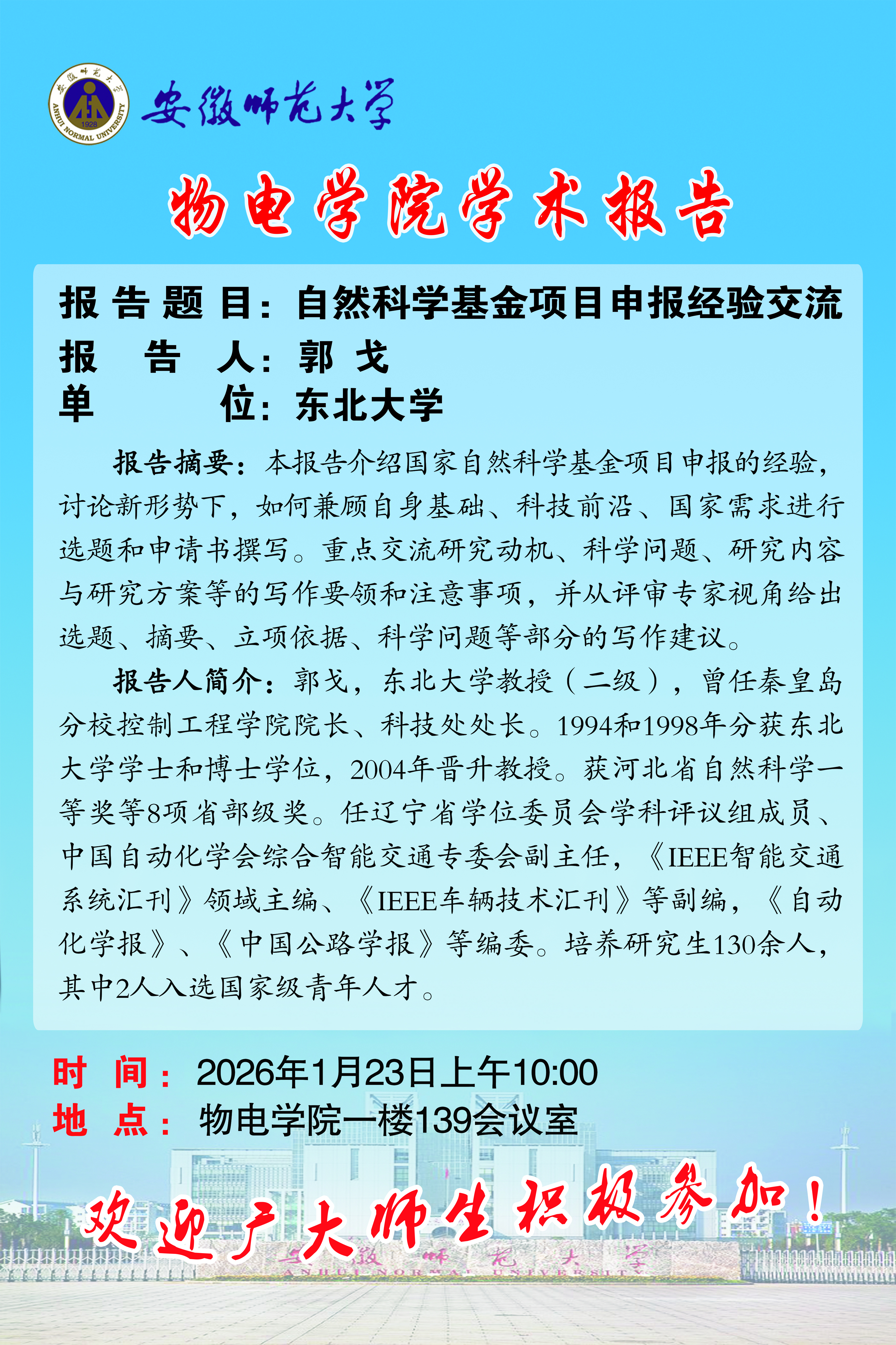 地址:花津校区-安徽省芜湖市九华南路189号 邮编:241000 电话:0553--3869894