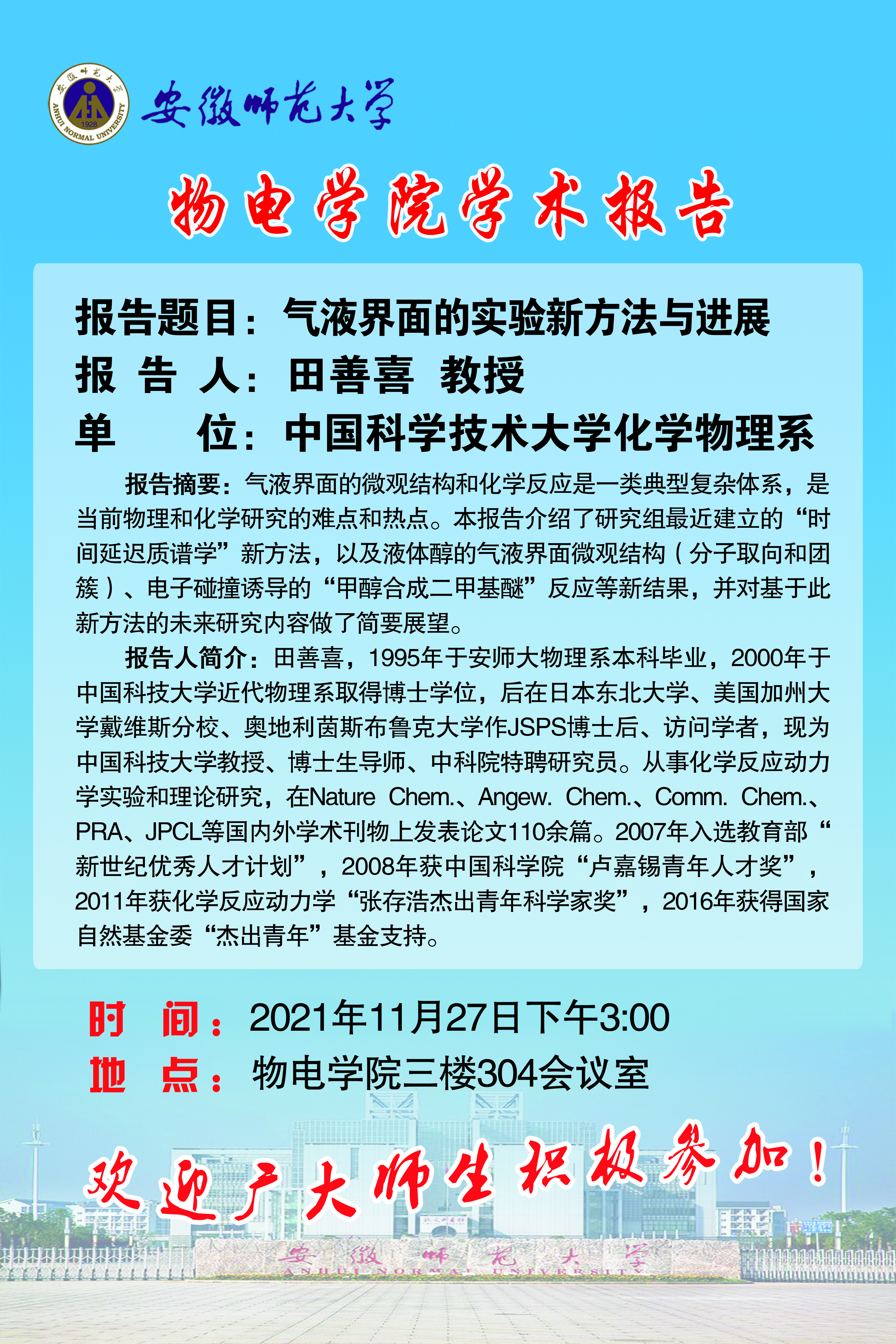 【学术预告】田善喜:气液界面的实验新方法与进展