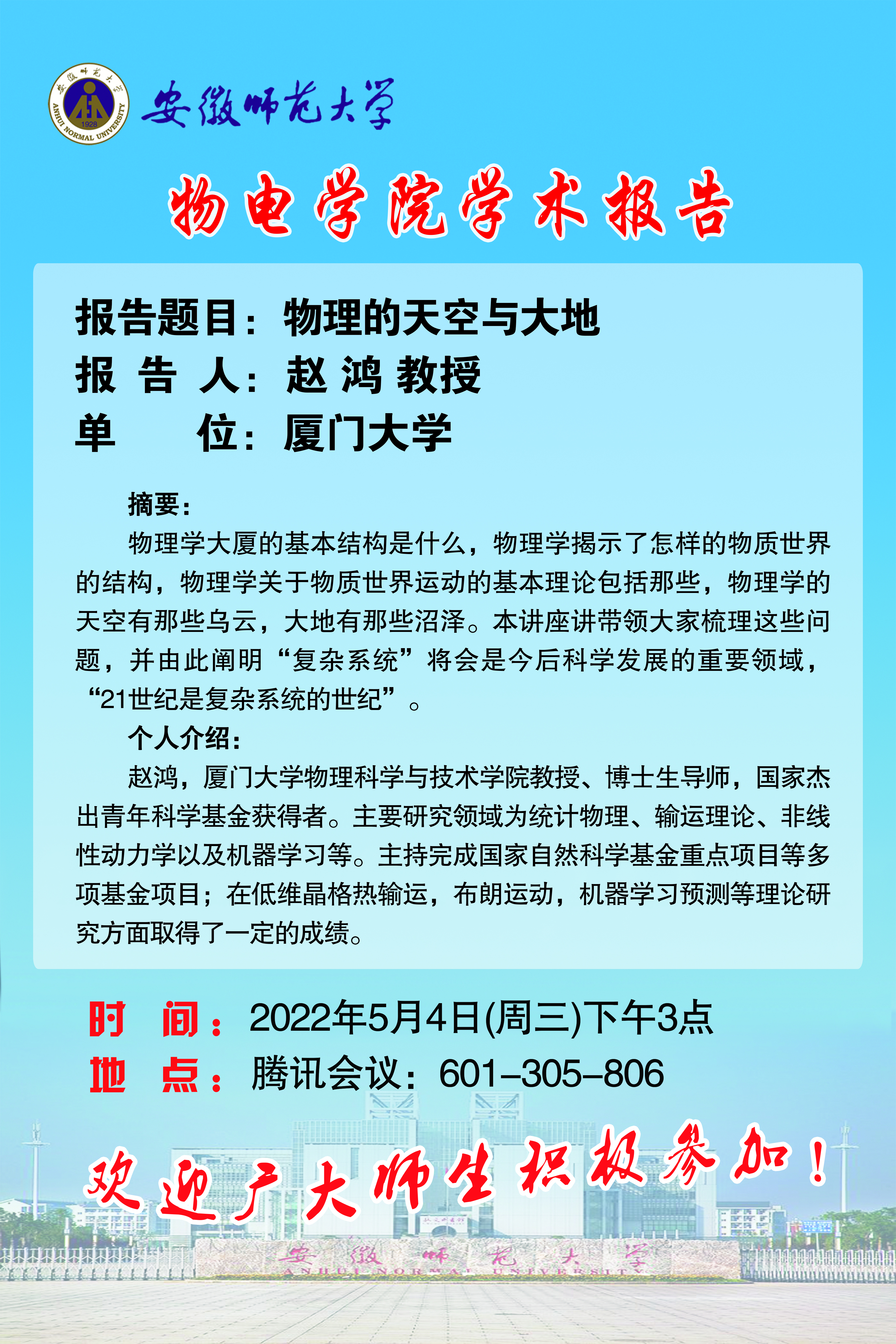 地址:花津校区-安徽省芜湖市九华南路189号 邮编:241000 电话:0553--3869894