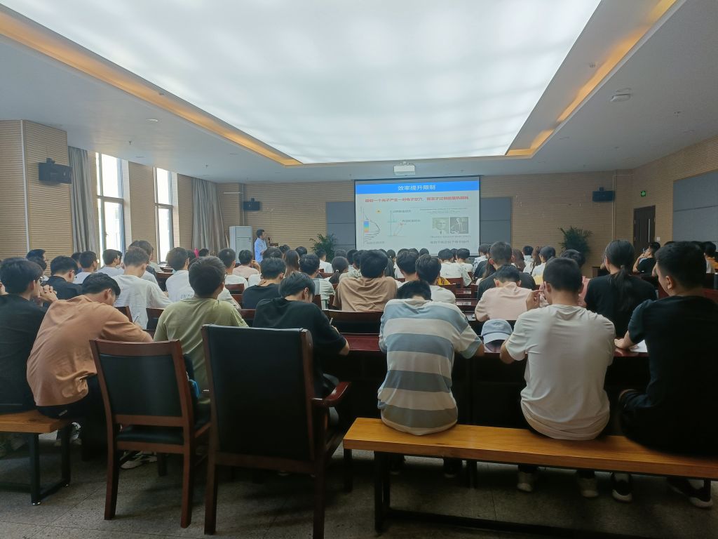 报告会上,张春峰教授首先介绍了分子光电转换的研究背景以及目前存在的问题,如:过剩能量损失、界面能量损失。张教授指出有机太阳能电池有望成为低成本光伏方案,在柔性光电器件方面颇具应用前景。在准静态平衡近似的传统模型下,光电转换效率受制于载流子的过剩能量热损耗和激子束缚能损耗。随后,张春峰教授同与会师生分享了在超快光谱方法学方面的新发展,介绍了他在分子光电材料激发态动力学研究方面的最新成果,详细讲解了低驱动能激子拆分、单线态裂分等有望突破传统模型限制的动力学机制。报告会结束后,与师生就相关问题同张春峰教授展开了热烈讨论和交流。