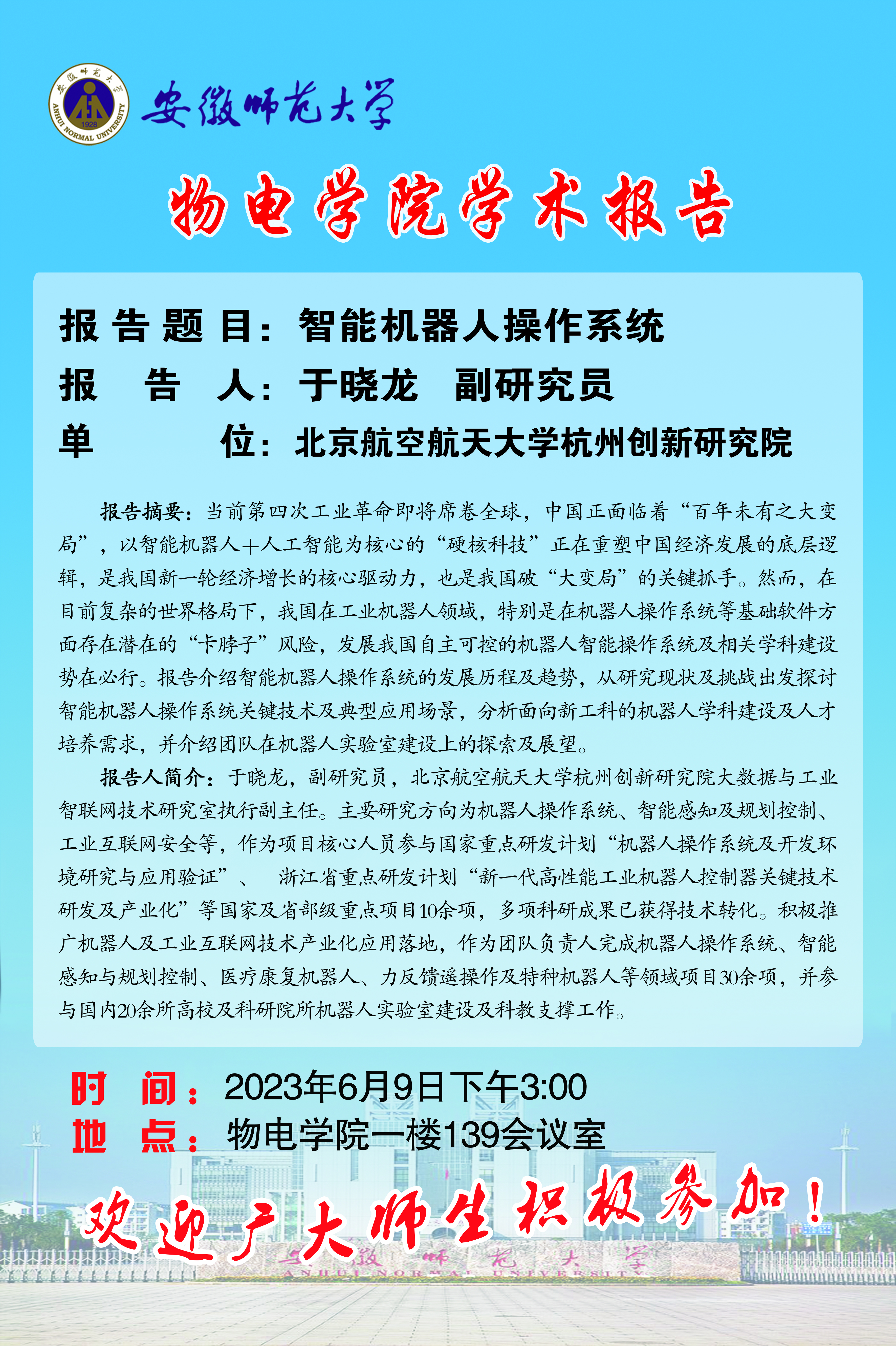 地址:花津校区-安徽省芜湖市九华南路189号 邮编:241000 电话:0553--3869894