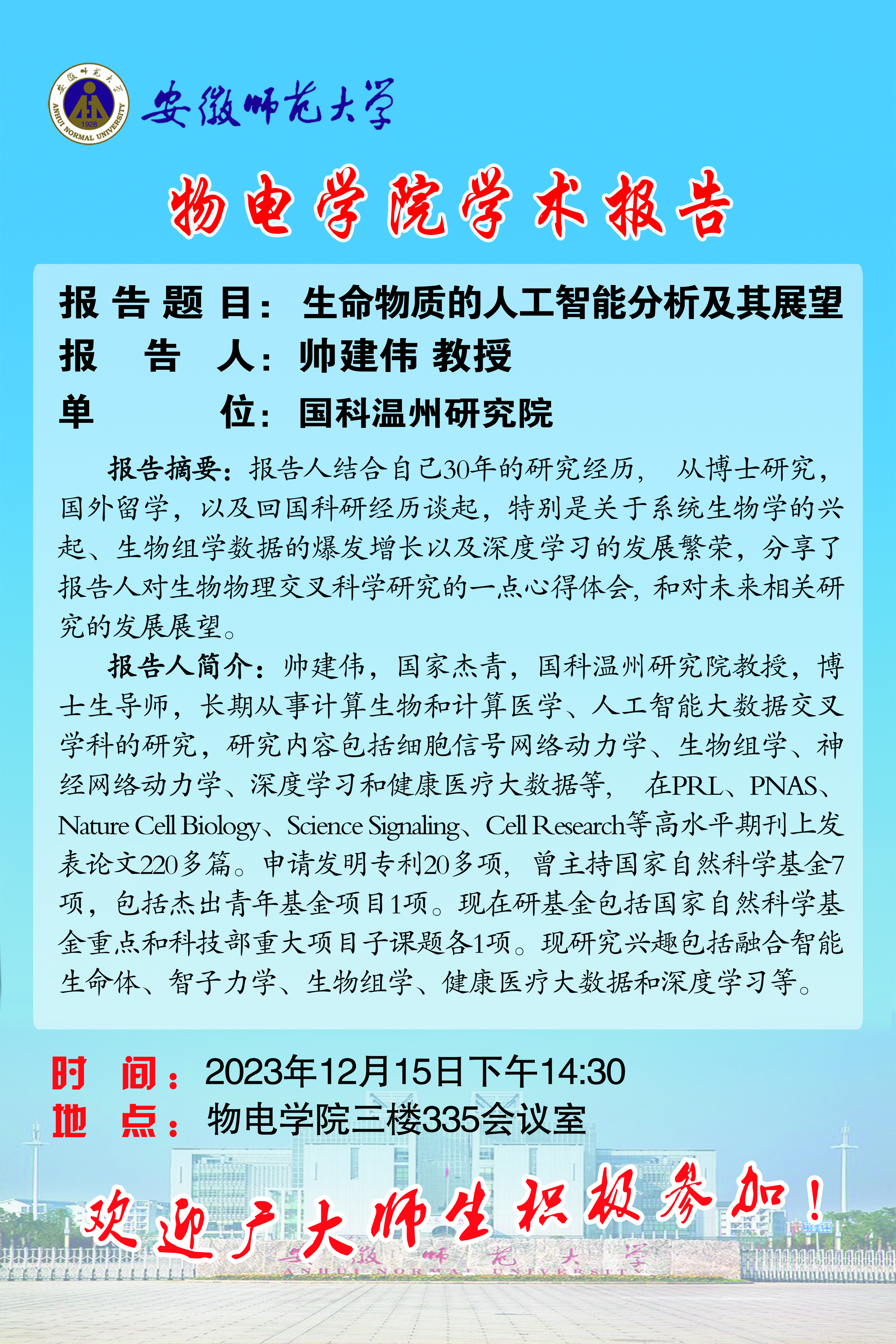 【学术预告】物电讲坛第45期:生命物质的人工智能分析及其展望