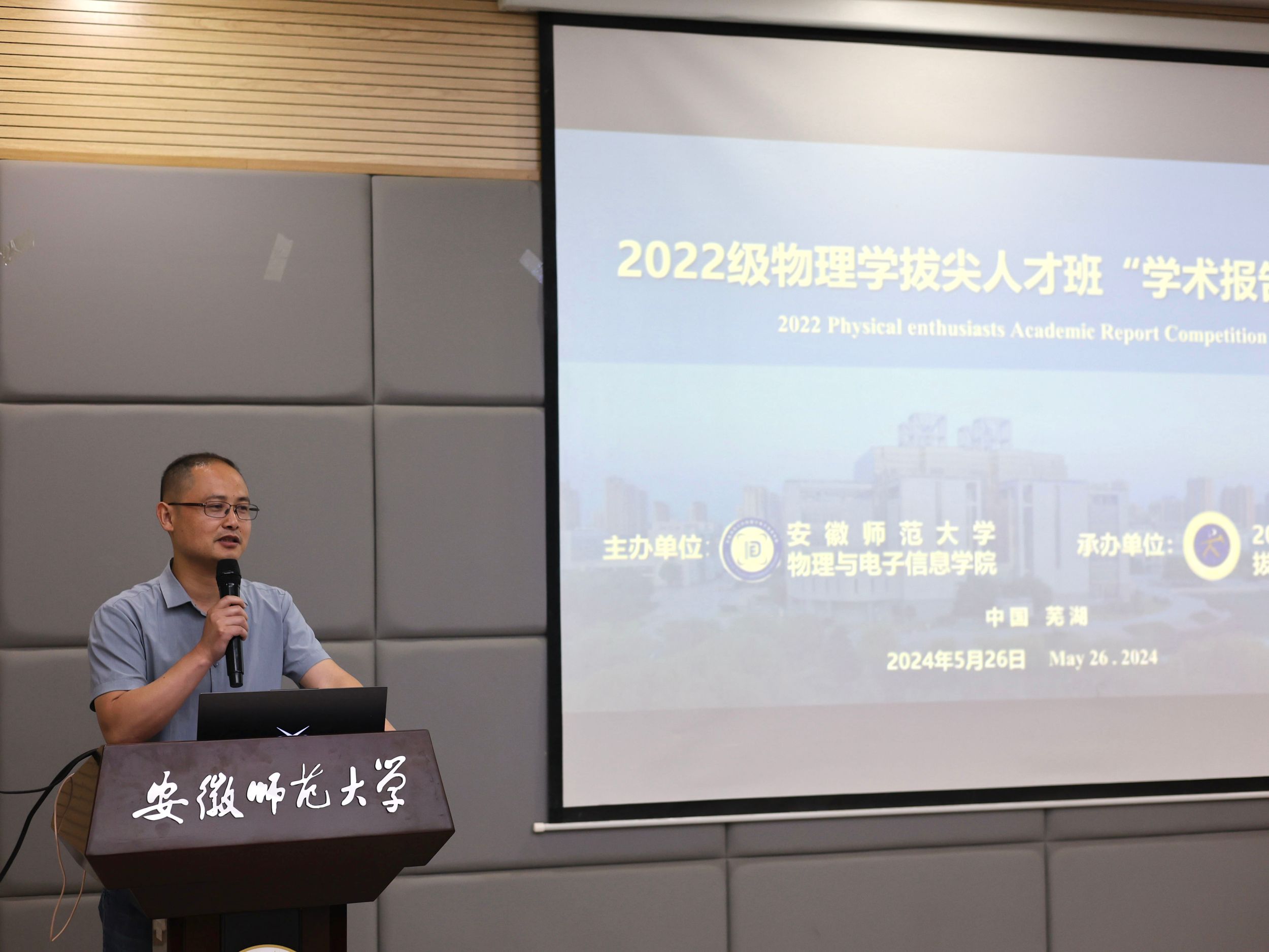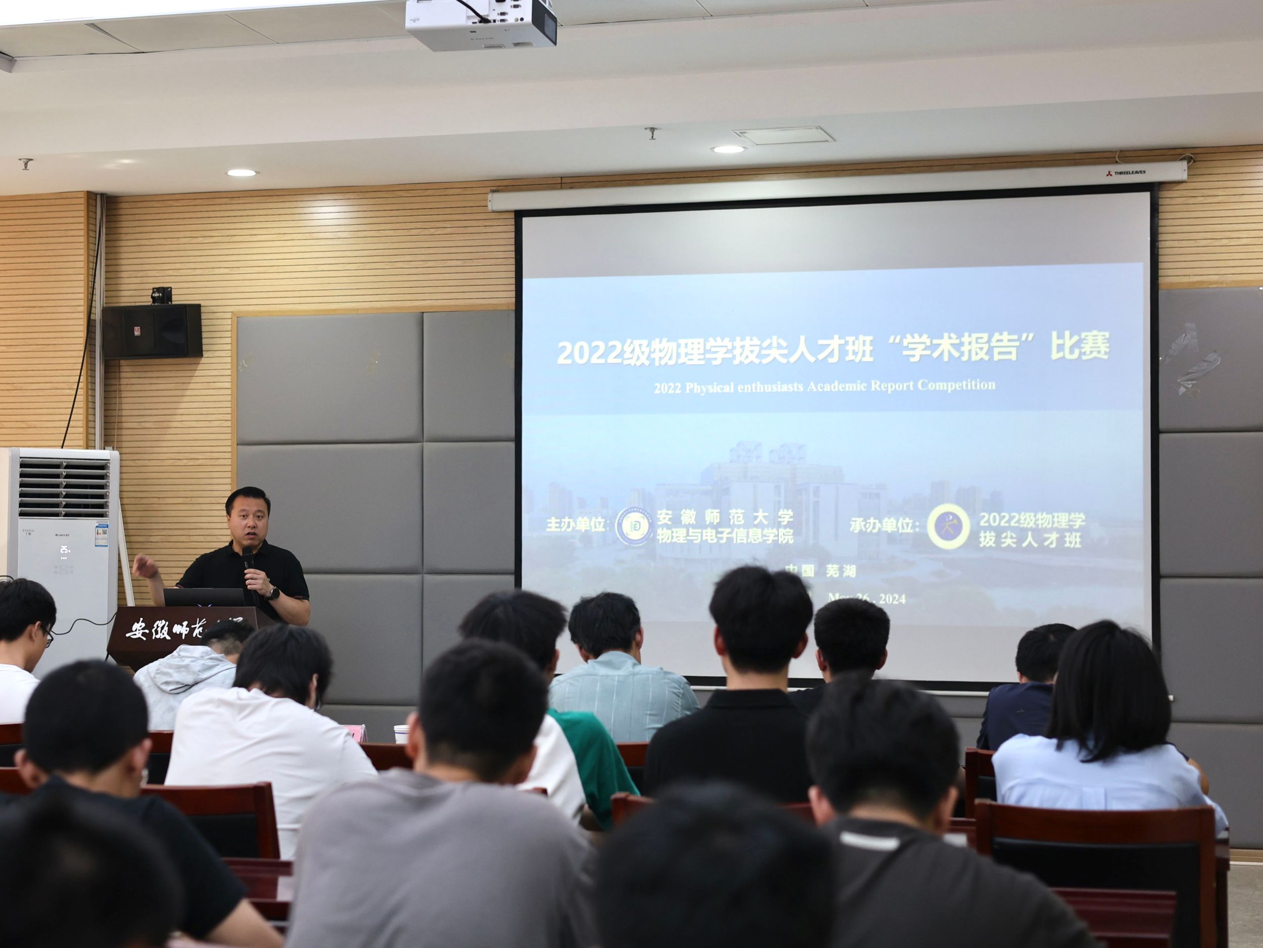 比赛开始前,黄友生书记从“是什么”“为什么”“怎么样”三个方面分享了举办学术汇报比赛的意义,希望同学们通过本次比赛培养科研能力,训练科研思维,同时分析了2020级和2021级物理学拔尖人才班学生发展情况,鼓励同学们科学进行自我评估,积极提升综合素质,个性化选择自己的发展方向。