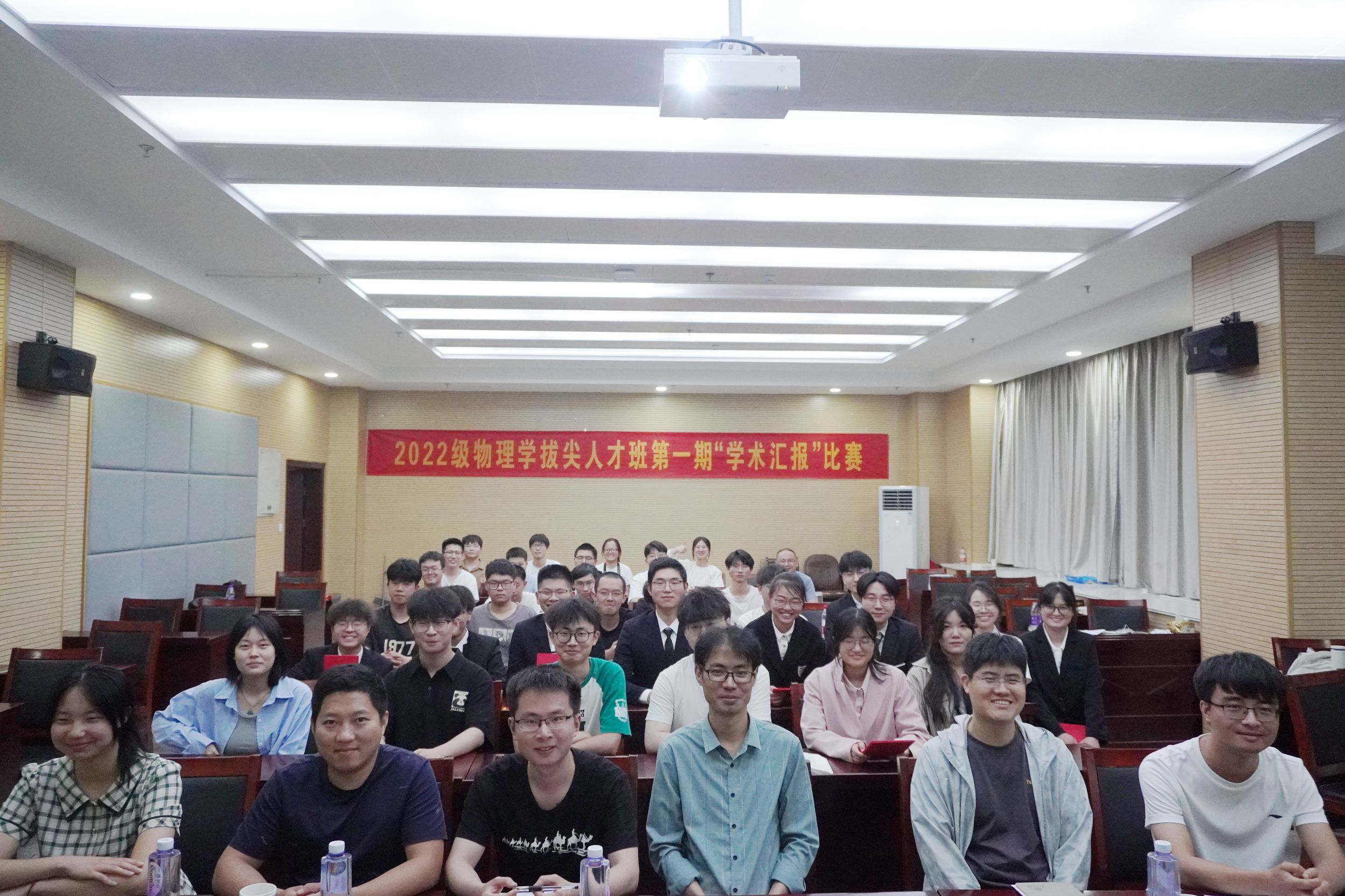 汇报完毕,物理学拔尖人才班班主任盛晓伟老师进行总结,他对各位老师的支持表示感谢,并对同学们提出了更高的期许,希望这项比赛能有更多同学参与进来。同时也对同学们的日常学习给予要求,希望同学们能在日常学习生活中珍惜光阴,在专业课程学习上精益求精,更进一步。