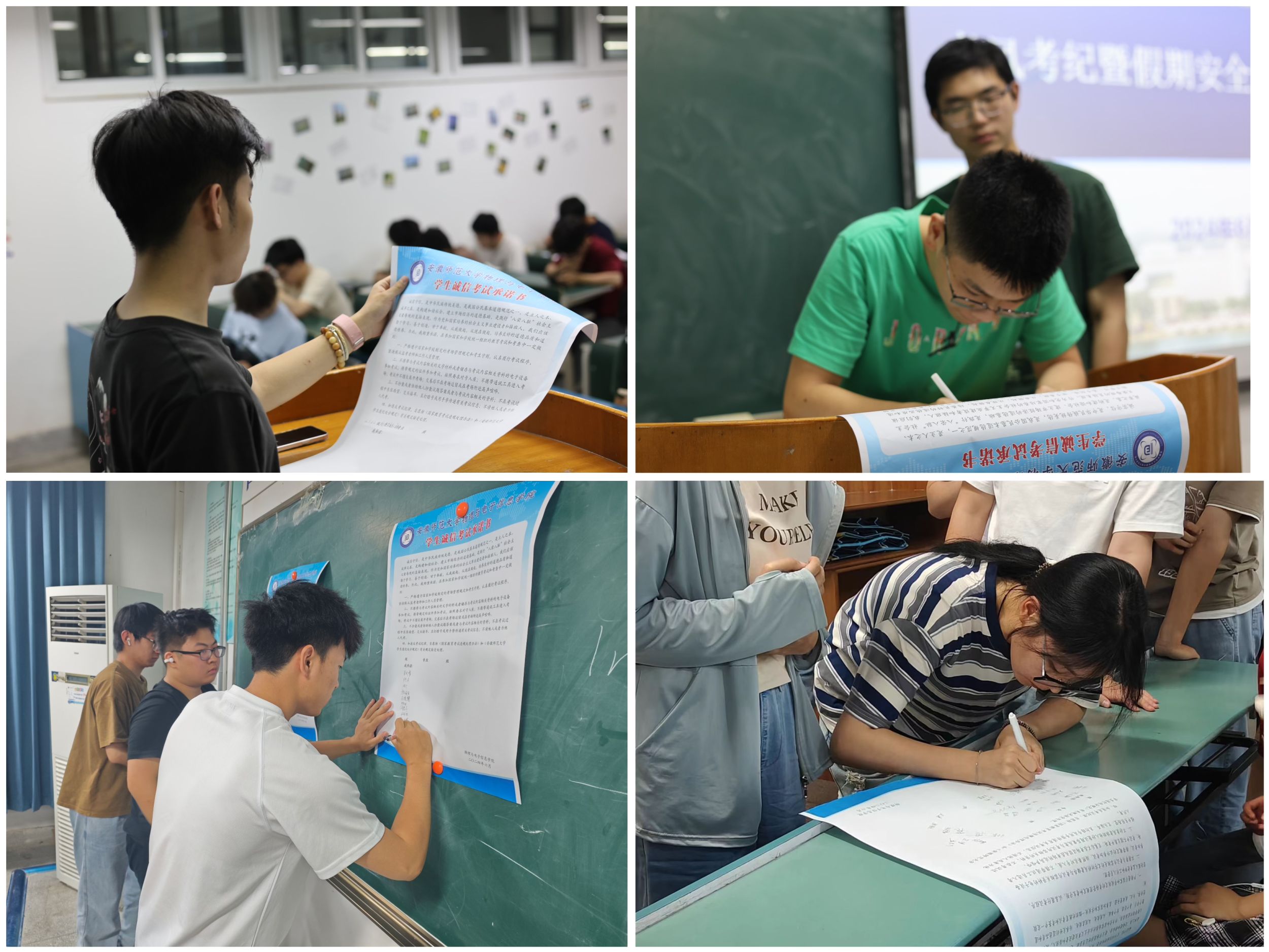 承诺践诺,营造诚实守信良好氛围。学院各班级带领学生认真学习《必赢线路检测3003学生违纪处分规定(修订)》、《必赢线路检测3003普通全日制本科毕业生学士学位授予办法(修订)》的相关规定,现场组织全体学生阅读并签署诚信考试承诺书,同学们对个人、班级、学院、学校作出郑重承诺,践行诚信考试承诺,自觉遵守考场规定,杜绝违规违纪行为的发生。