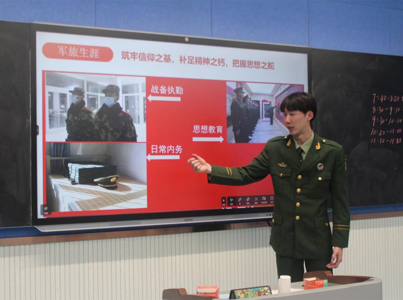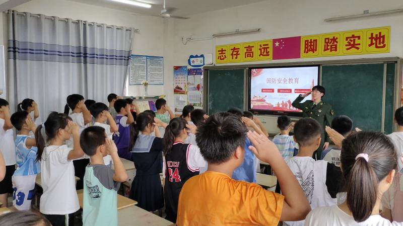 退役军人、大学生青年志愿者潘析文开展国防安全教育课程。