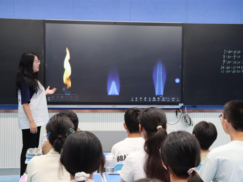 大学生志愿者带领学生们走进“化学的世界”。