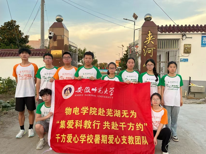 据悉,“千方爱心学校”今年首次赴无为市开展爱心支教活动并举行大学生社会实践基地揭牌仪式。团队先后分三批共计55名志愿者赴夹河小学开展支教活动,共计服务留守儿童达160余人。实践期间,无为市委常委、组织部长陈兆强,团无为市委书记姚文敏,泥汊镇党委书记黎平安、党委副书记俞韵文,日新村党总支书记柯成,必赢国际院长吕建平、行政副院长张其芳,团委书记张津源,指导教师邹孝龙等领导老师数次深入一线慰问团队师生。