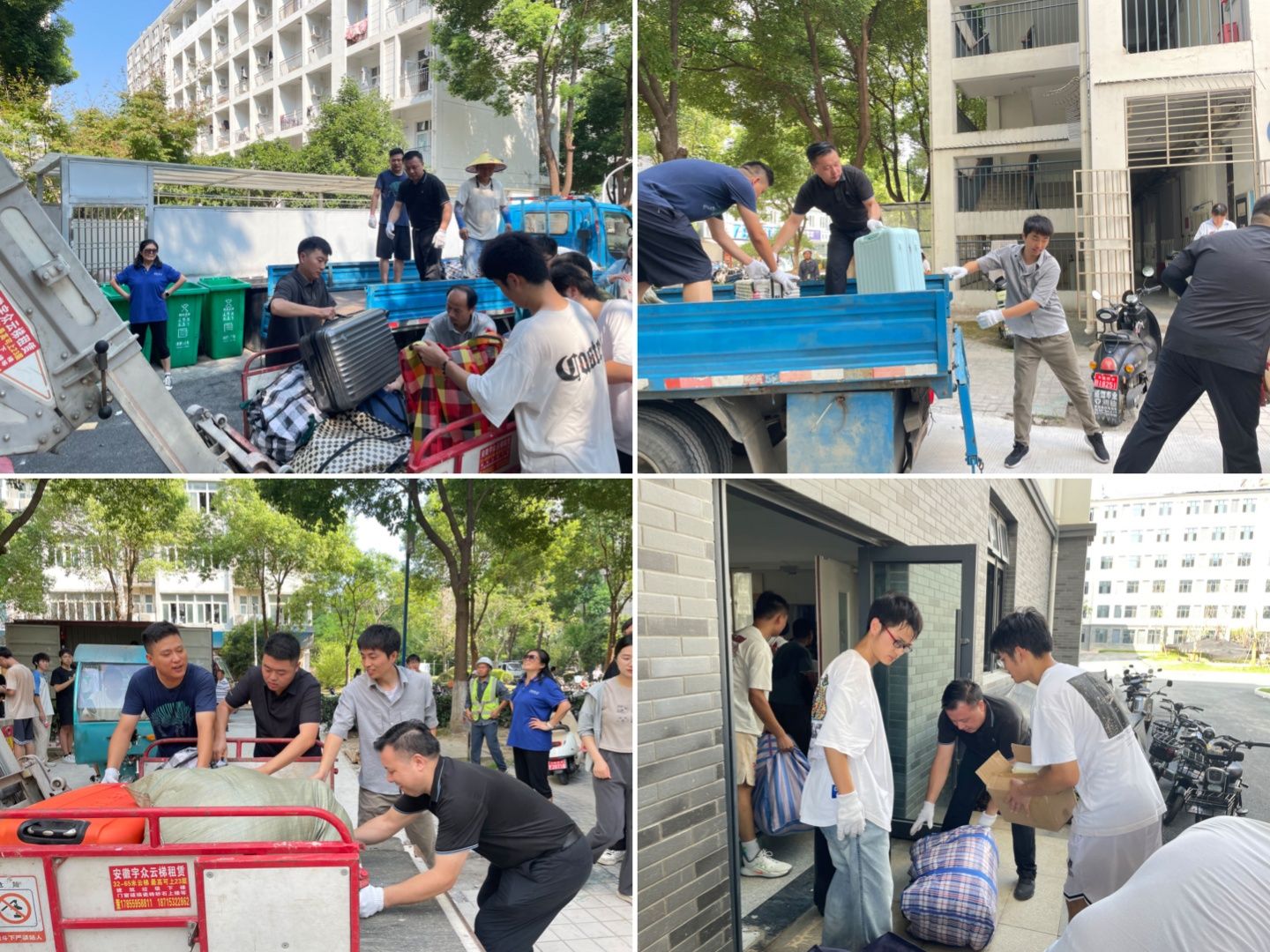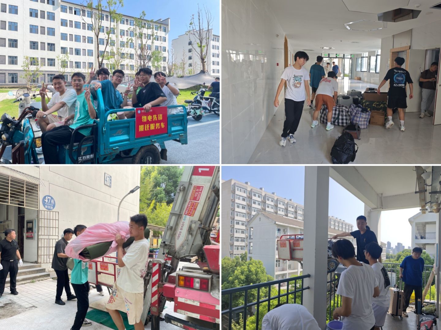 搬迁期间,学院采取了分批次、多模式的搬迁策略。8月28日至29日,提前返校的学生利用学院物电先锋车先行搬迁个人物品,有效缓解了集中搬迁的压力。8月30日上午,学院上下一心,组织集体搬迁。面对高温酷暑的严峻挑战,学院党委书记李娟,党委副书记黄友生及全体专兼职辅导员以身作则,深入搬迁一线,分发搬迁物资、帮助装卸行李,确保了搬迁工作的有序进行。