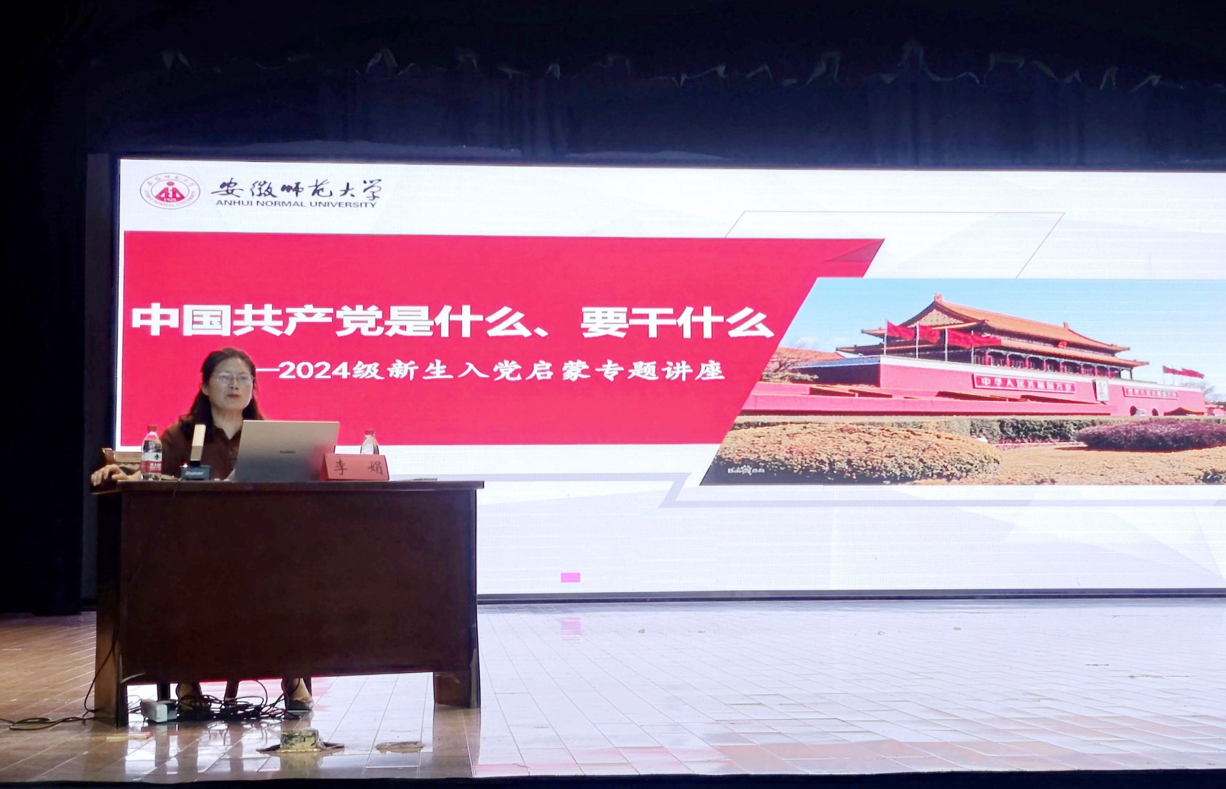 李娟以“中国共产党是什么,要干什么”为主题,率先展开了新生入党启蒙教育,帮助新生了解党的基本理论、基本路线、基本知识和入党程序,教育新生端正入党动机,并详细讲解了入党条件、流程和注意事项。同时她围绕“当代青年怎么做”这个话题,强调了新生同学要增强专业认同感,明晰未来发展方向和目标,养成良好的生活学习习惯,做一个有理想、有道德、有纪律、有本领的大学生。