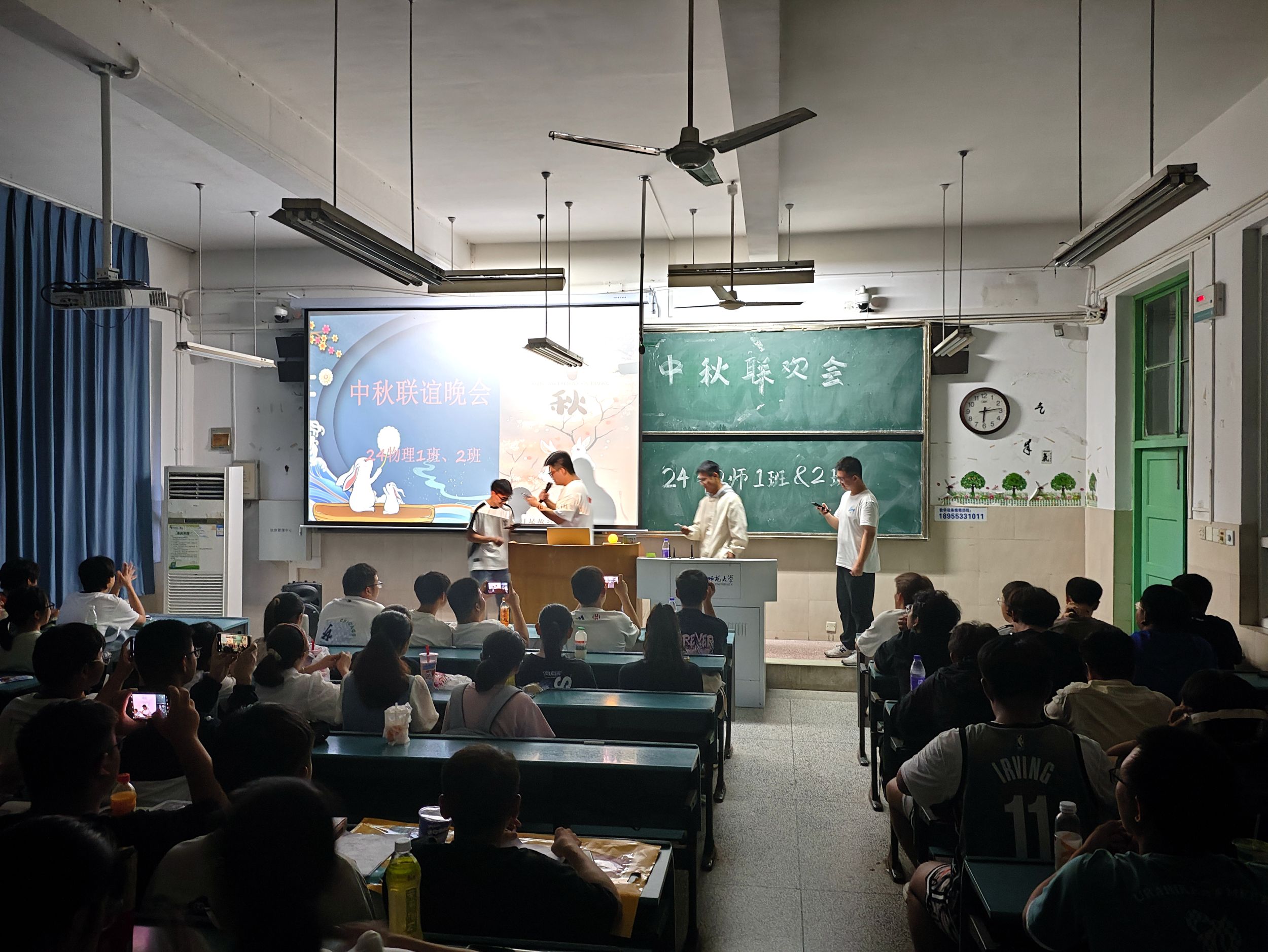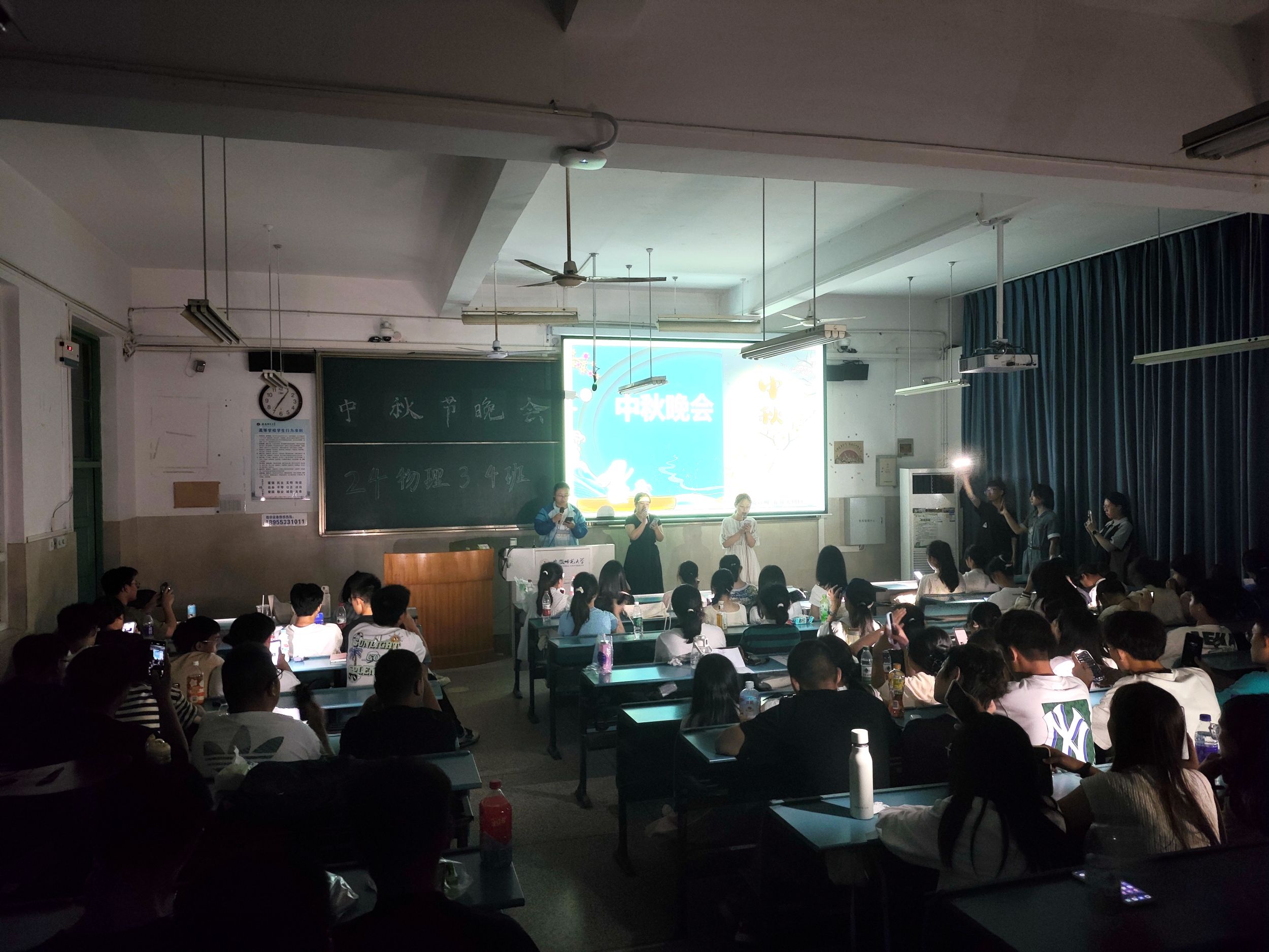 联谊会上,丰富多彩的节目轮番上演,令人目不暇接。新生们纷纷展示了自己的才艺,从悠扬的歌声到动感的舞蹈,从深情的诗词朗诵到创意十足的相声小品,每一个节目都充满了青春的活力和对中秋佳节的深情祝福。除了才艺展示外,晚会还穿插了多个互动环节,如猜灯谜、击鼓传花等,让新生们在参与中体验中秋传统文化的魅力,同时也增进了彼此之间的友谊与了解。