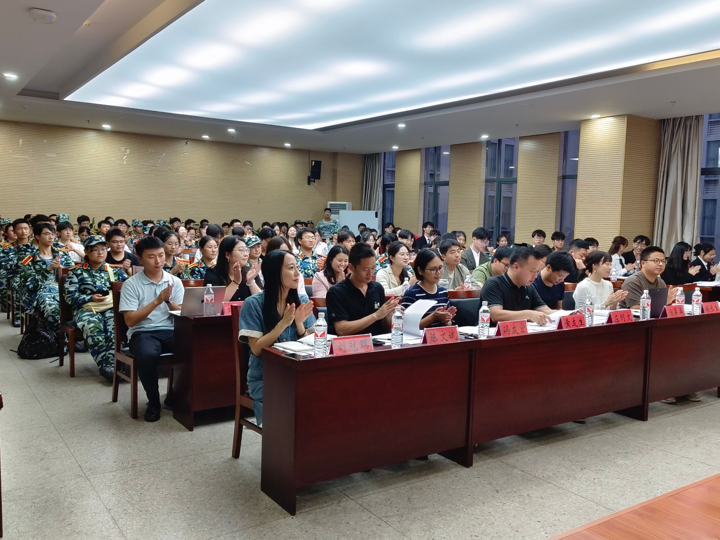 黄友生做总结点评,他从“有理念、有措施、有亮点、有成效”四个方面对各学生组织建设成效表达了充分的肯定。他强调,各班级、团支部要围绕建设赋能型班集体(团支部)这一目标,充分发挥班委和团支委作用,强化思想建设、学风建设和精神文明建设,努力将学生组织打造成思想、学习、情感和发展的共同体,护航学生健康成长。会后全体汇报选手和评委老师合影留念。