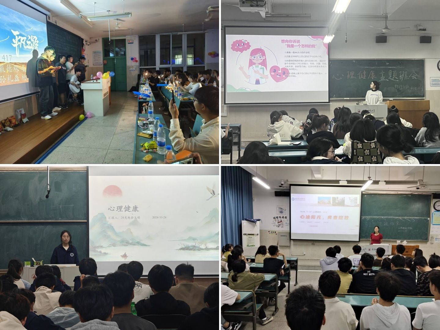 携手交流,织密人际联结。坚实可靠的人际关系网,是承托一个人心灵成长的重要后盾,也是一个人心境发展的重要土壤。心理健康月期间,学院领导和辅导员深入宿舍、课堂,走进学生生活,与学生开展谈心谈话,了解学生所需所困,增进师生情谊;各班级积极开展班级联谊、湖边夜谈等交流活动,促进同学之间的互动,增进班级凝聚力。