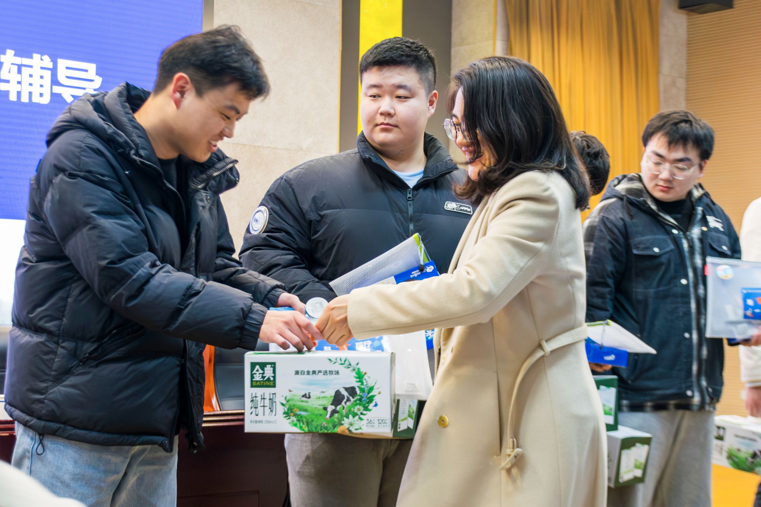 会议最后,李娟、张爱清为学生代表发放了精心准备的“加油礼包”,包含金典牛奶、橙色文具袋与奥利奥饼干,祝愿同学们金榜题名,一定“橙”功,奥利给!