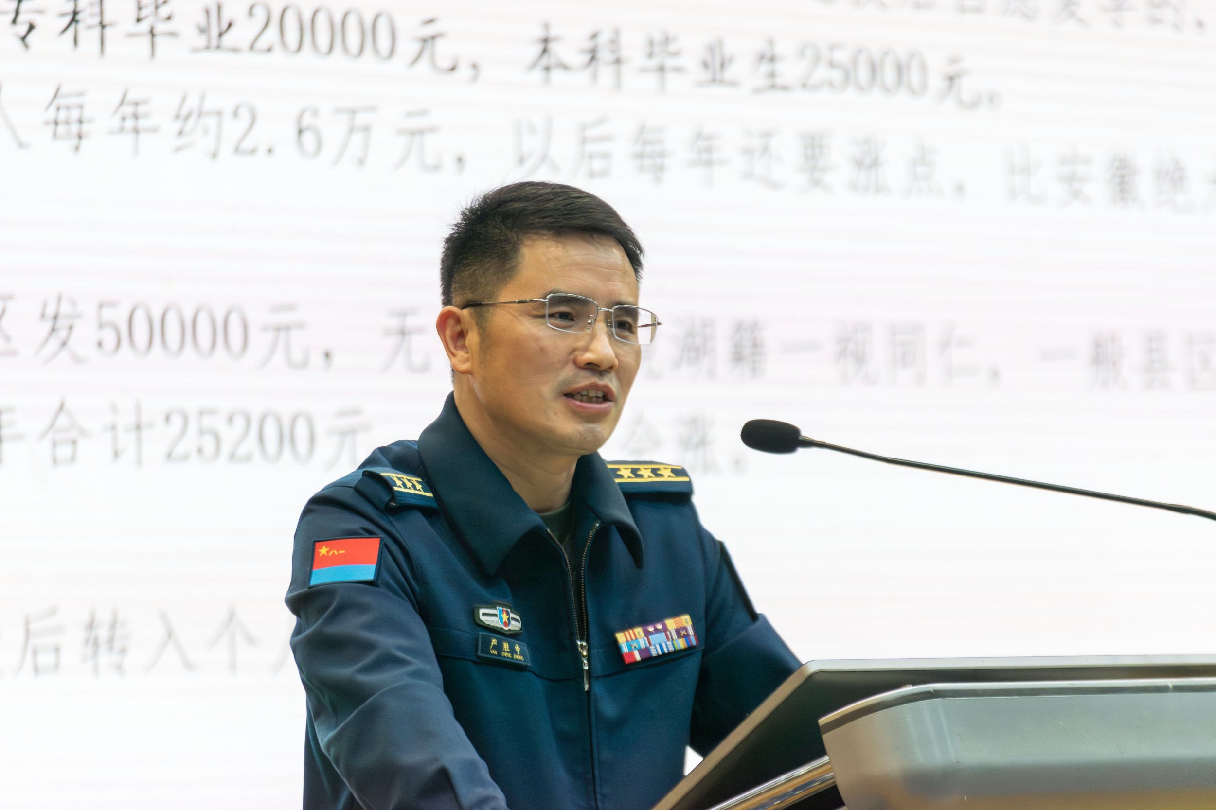 严胜中以《树牢初心、励志军营,争做关心支持国防建设的好青年》为题,从“我军是怎么来的、近年来我军的发展变化、应征入伍的‘六笔账’”三个方面开展了国防教育和征兵政策宣讲,鼓励同学们积极报名应征入伍,到祖国一线贡献青春力量。