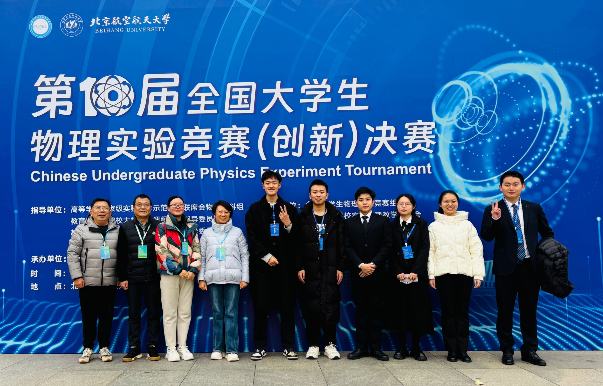 近日,第十届全国大学生物理实验竞赛(创新)决赛在北京航空航天大学圆满落幕。必赢线路检测3003no1积极参与此次赛事,共派出六支队伍参赛,其中两支自选类队伍和一支讲课类队伍成功晋级全国总决赛,且全部获得全国一等奖的好成绩。本次比赛我校共获一等奖3项、二等奖1项、三等奖2项,学校代表队获评优秀组织奖,创造参加此赛事的历史最好成绩。