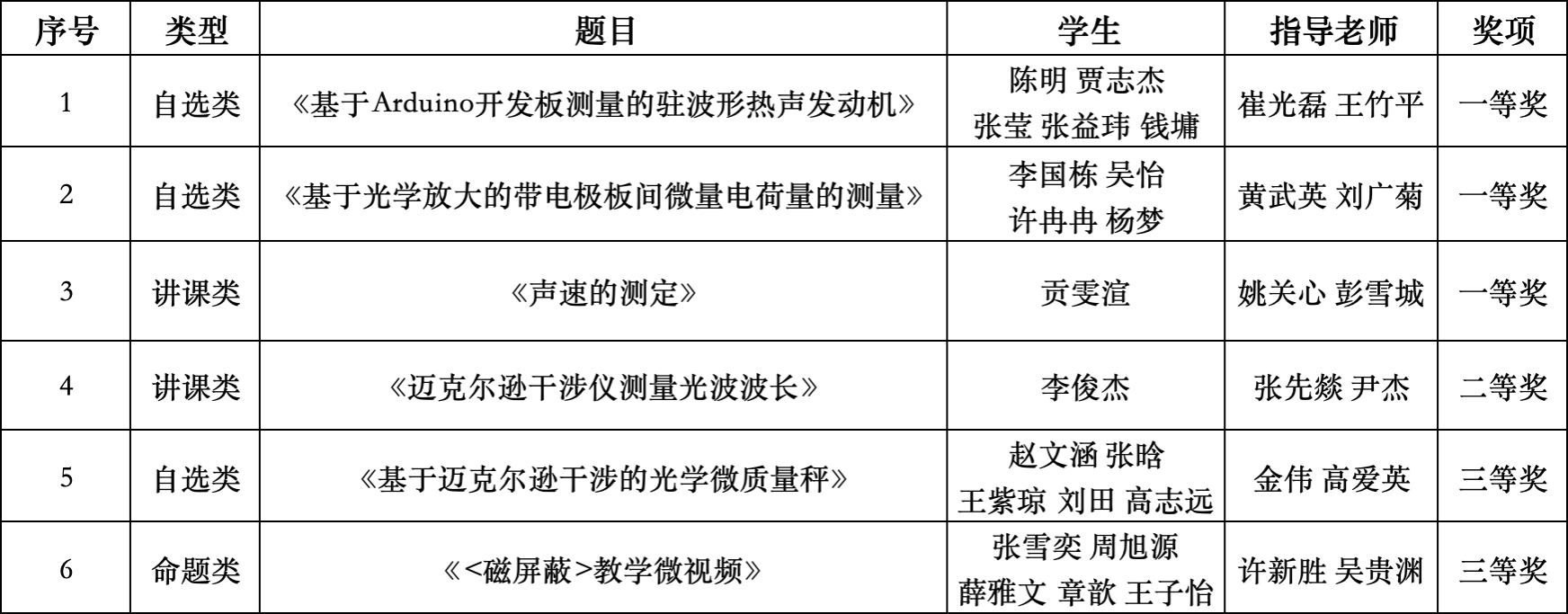 学校对本次赛事予以高度重视,自备赛活动启动以来,教务处等相关部门给予全方位支持,必赢国际精心组织多轮集训,参赛团队师生全力打磨作品。经过校赛初审、国赛线上评审等环节的重重考验,最终,自选类《基于Arduino开发板测量的驻波形热声发动机》、《基于光学放大的带电极板间微量电荷量的测量》和讲课类项目《声速的测定》三个项目荣获全国一等奖。此外,讲课类《迈克尔逊干涉仪测量光波波长》获得全国二等奖,自选类《基于迈克尔逊干涉的光学微质量秤》和命题类《<磁屏蔽>教学微视频》获得全国三等奖。