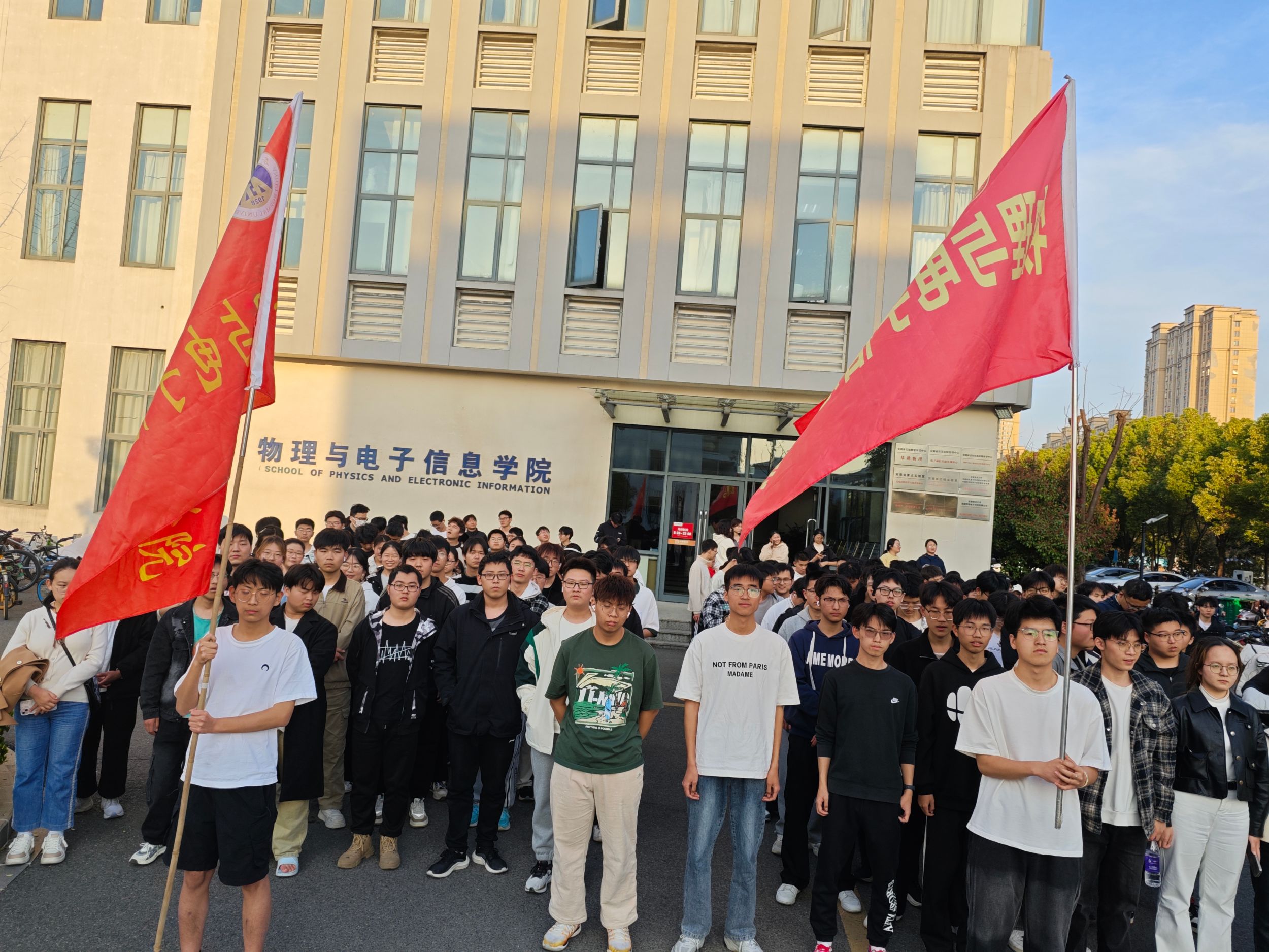 在领跑员带领下,同学们从物电楼前出发,沿民主大道向北途经望道楼,绕过文典楼沿科学大道向南经过敬文图书馆、明德亭,穿过花津河畔的鹅卵石小路,感受春天的气息,欣赏春日里的师大美景。沿科学大道继续向南,穿过化雨亭后沿民主大道回到物电楼前。2023级物理学的甘梦洋同学表示:“非常高兴能和大家一起跑跑跳跳,既能锻炼身体又可以欣赏师大美景,希望以后学院可以多多举办这种活动。”