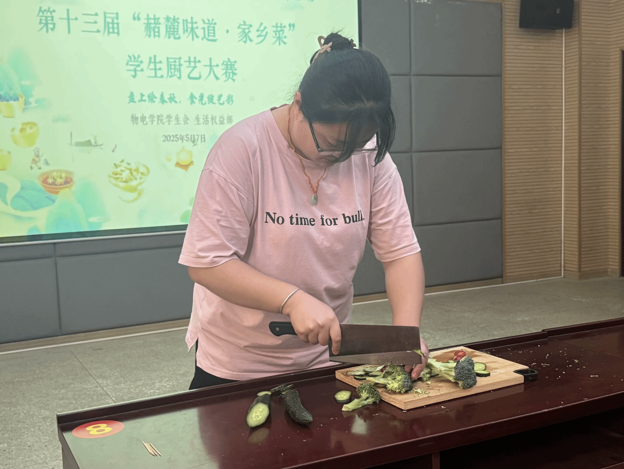 此次活动以“盘上绘春秋,食光绽艺彩”为主题,分为初赛和决赛两个阶段。比赛广受同学欢迎,初赛收到来自天南地北的家乡菜肴,琳琅满目,让人流连忘返。最终选出了12组选手进入决赛。在决赛中,选手需要在给定食材和规定时间内展示刀工,再根据所切的食材自主创意摆盘,最后经评比得出成绩。
