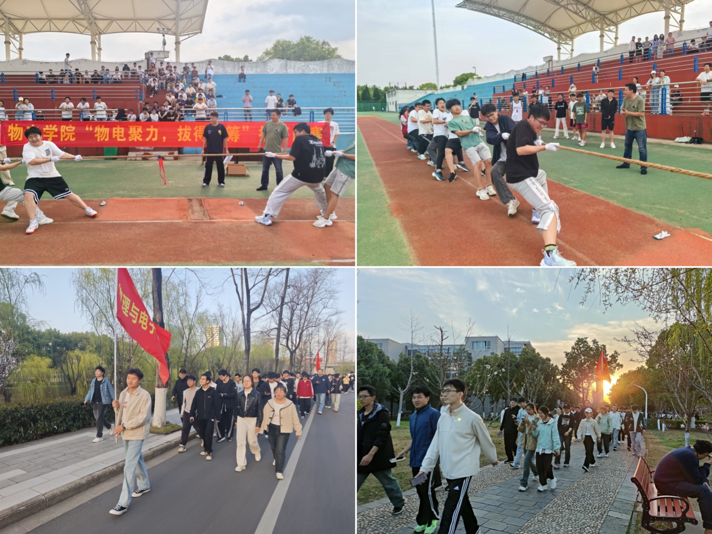 “以体强心”:强健体魄,愉悦身心。为鼓励学生走出宿舍、走向操场,丰富课余生活,提升身心素质,学院先后组织“奔跑吧,物电人”环校悦跑活动、“物电聚力,拔得头筹”拔河比赛,以丰富有趣的运动形式促进学生身心放松,引导学生以阳光向上的姿态迎接生活中的挑战。