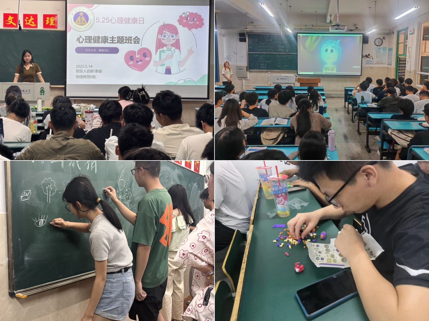 学院发展辅导站指导各班级积极召开心理健康月主题班会,科普心理健康基础概念、常见心理健康问题以及自我疏导方法,营造班级阳光氛围。此外,部分班级还组织趣味观影、“你画我猜”、“拼搭童年”等活动,舒缓同学们的学业压力,丰富校园生活。