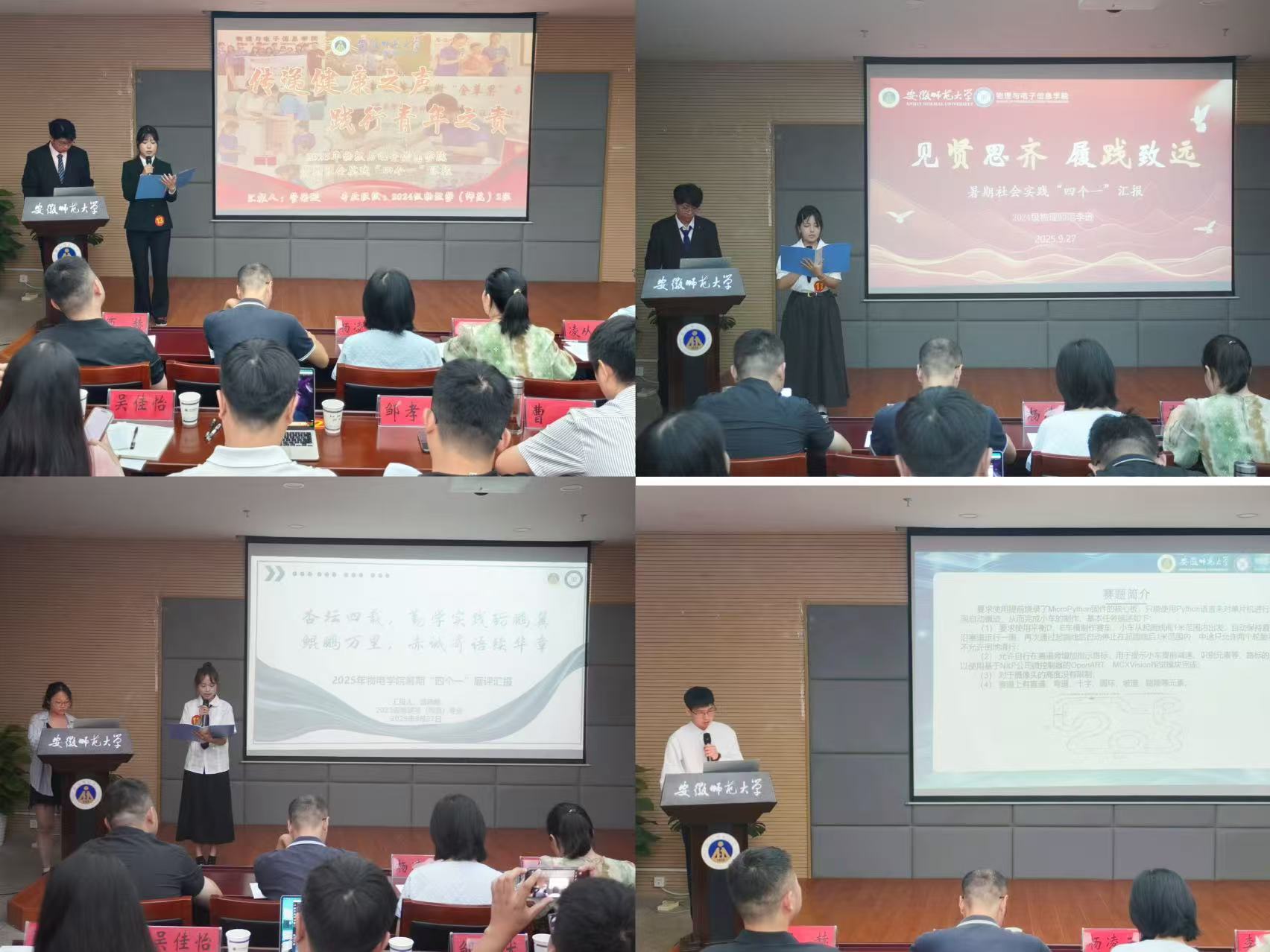 9月27日,必赢线路检测3003no1在物电楼304报告厅召开2025年暑期社会实践暨假期“四个一”展评交流会。学院党委副书记凌从祥,社会实践思政导师代表李靖,电子信息专业负责人甘露,专业课教师胡长生、杨凌云、张松、吴勇以及全体专兼职辅导员出席活动,各班级、实践团队学生代表到场观摩学习。