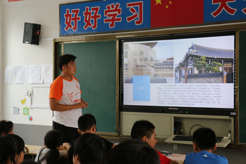 本网讯(必赢国际 王波)物电学院赴安徽颖上鲁口镇中心学校团队为期7天支教活动正在进行中。7月27日,支教第三天。上午八点准时上课,队员们给孩子们上了朗诵课。大多数孩子还分不清翘舌音和平舌音,也无法通过语调的变化表达文章的感情。队员们很认真地跟孩子们讲解着,孩子们的眉头也逐渐舒展开,教室里的朗读声更加和谐。十点,朗读课下课休息十五分钟后,大家开始了第一节体育课。清晨的大雨给小镇送来久违的一阵清凉,孩子们迫不及待地跑到操场上,拉着队员们玩起游戏。第三天,队员们已经和这群可爱的孩子们打成一遍,孩子们眼中也已没有刚开始时的拘束和羞涩。下午三点,孩子们开始上课。下午的课程是物理和地理,主要目的是课后拓展,开阔孩子们的眼界。课堂上,同学们积极地举手回答问题,对从未涉及过的话题充满了好奇。
