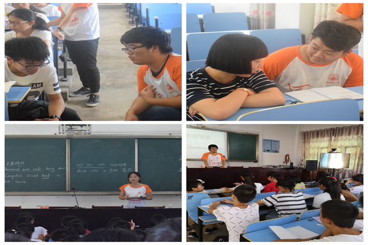 17日下午,支教队正式开课,紧接着物理、数学、英语老师轮番上阵。其中,物理老师杜帅帅有机地将历史和物理紧密联合在一起,一堂物理学史课精彩纷呈,为人称道;数学老师魏潘晨带领大家体验数学的奥秘,算数几何题千变万化,每解出一种,都是一份喜悦,一份满足;而英语老师丁臻则迈出中国,迈向国际,她一口标准流利的英语将中西文化差异娓娓道来,让大家领略了异国风情,开阔了视野。课下,老师们也热心主动地去帮助同学们解决在学习作业中的难题,有问必答,举一反三,在提高学生素质同时的同时,也展示了物电学子严谨踏实,乐于助人的优秀品质。