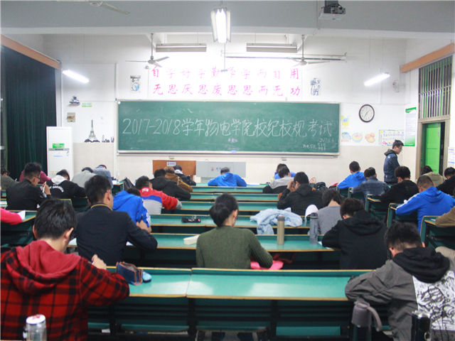 本网讯(宣传部)为进一步加强新生的思政教育工作,检验同学们校纪校规的学习情况,11月3日晚,必赢国际在行知楼组织了2017-2018学年校纪校规考试。此次考试由院学生会负责监考及试卷批改工作,全院新生参加了这次考试。
