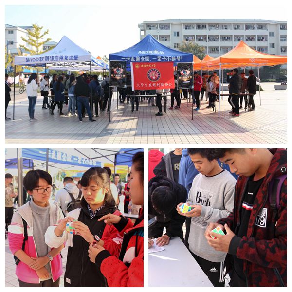 本网讯(李琦琦 大学生发明创新协会)2017年11月1日下午14:00,由大学生发明创新协会主办的第四届魔方拼接大赛在花津校区一食堂南广场如期举行,来自各学院共40名魔方爱好者参与了此次比赛。