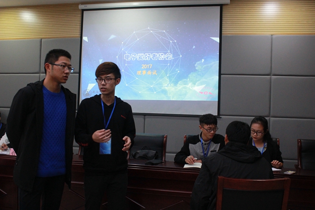 本网讯(文/汤智睿 图/许晨晨)10月16日中午,电子爱好者协会新任理事面试在物化楼335会议室正如火如荼的进行。指导老师许晨晨亲自指导协会全体成员组织新一届的会员面试工作。