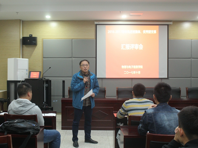 本网讯(宣传部 王海芹)为进一步加强学院本科生班级建设,增强基层团组织的吸引力、凝聚力和战斗力,充分发挥学生优秀集体在“立德树人”工作中的重要作用,引导和激励广大青年大学生勤奋学习、扎实工作,10月13日晚19:30,必赢国际在理化大楼必赢国际335报告厅隆重举行2016—2017学年先进班集体、优秀团支部评审汇报会。学院党委副书记吴长义、团委书记米佳佳、团委副书记宋凤楼、全体辅导员及班级学生代表出席了此次会议。汇报会由辅导员张杰主持。
